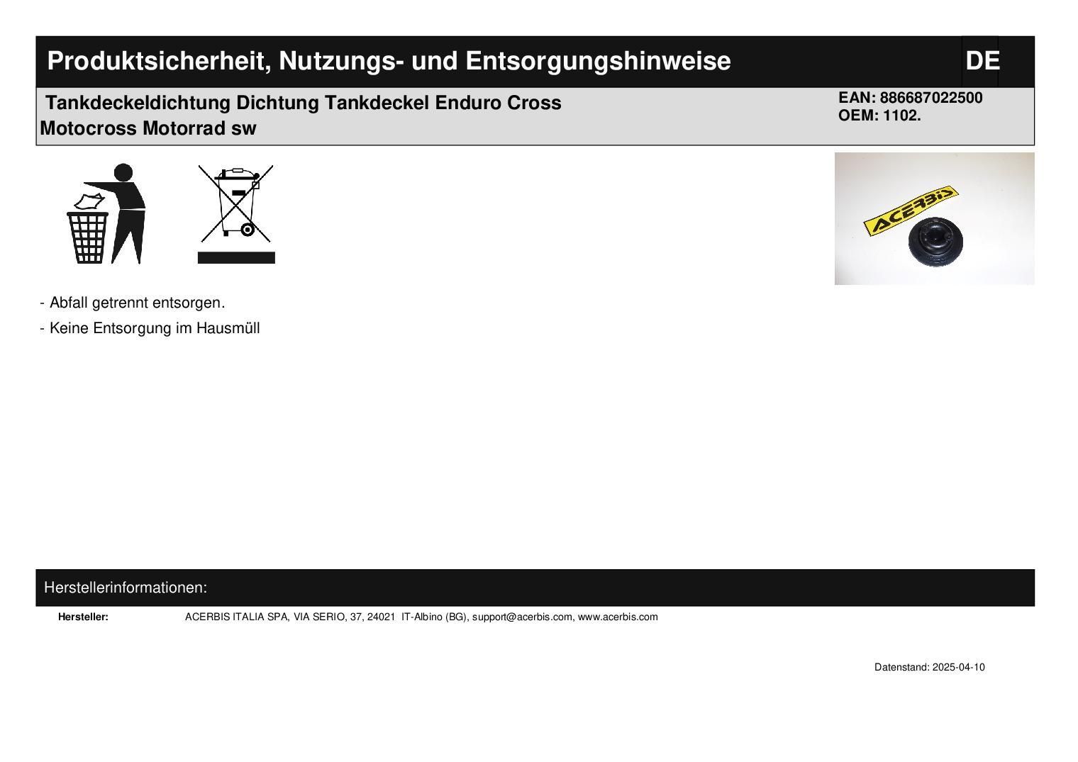 Acerbis Tankdeckeldichtung Dichtung Tankdeckel Enduro Cross Motocross Motorrad sw