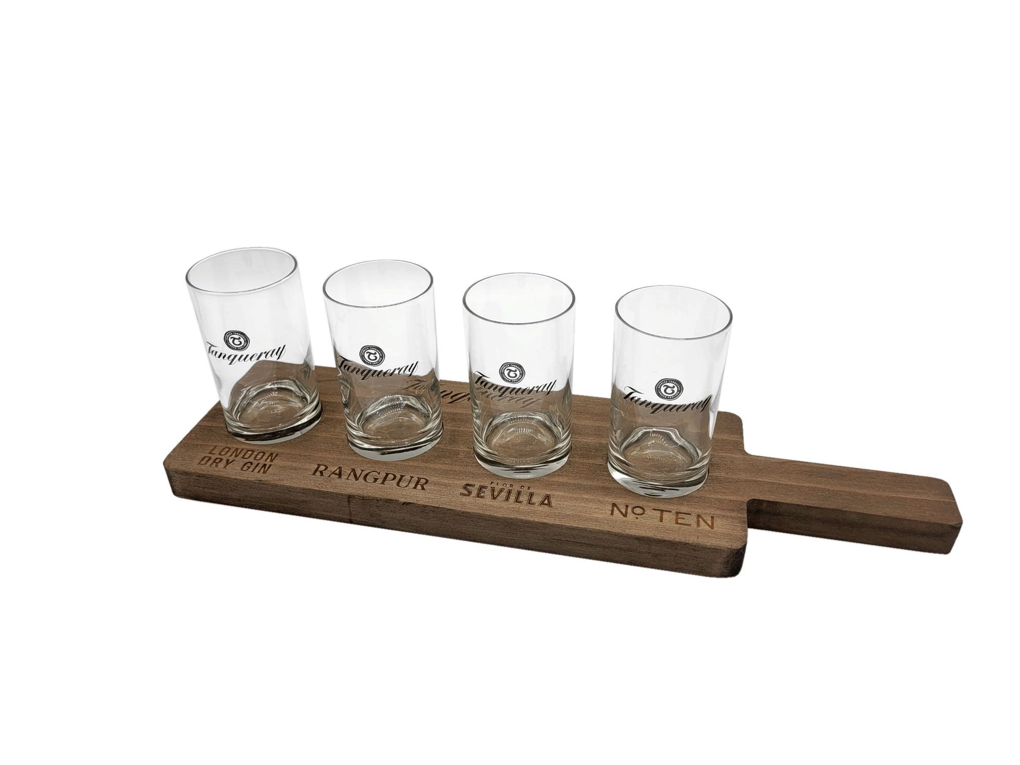 Tanqueray Tanqueray Tablett Echtholz Probier Brett mit 4 Gläsern Servier Meter Träger gin