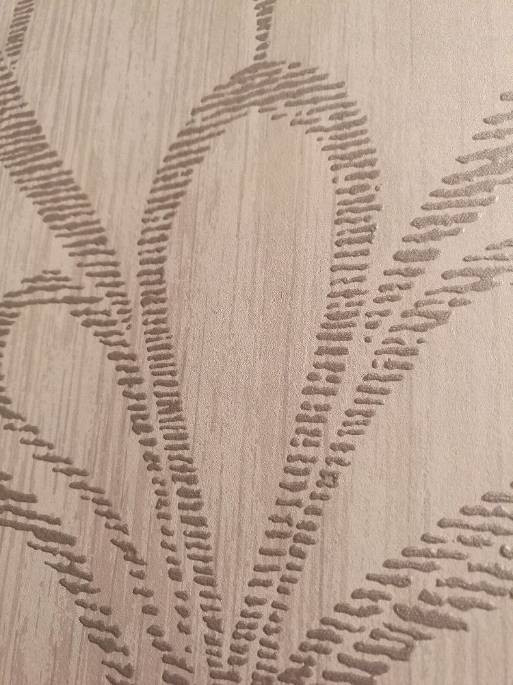 Tapete, Designtapete, Moiréeimitat, Landhaus, floral, flieder, sand, weiß, Glanz