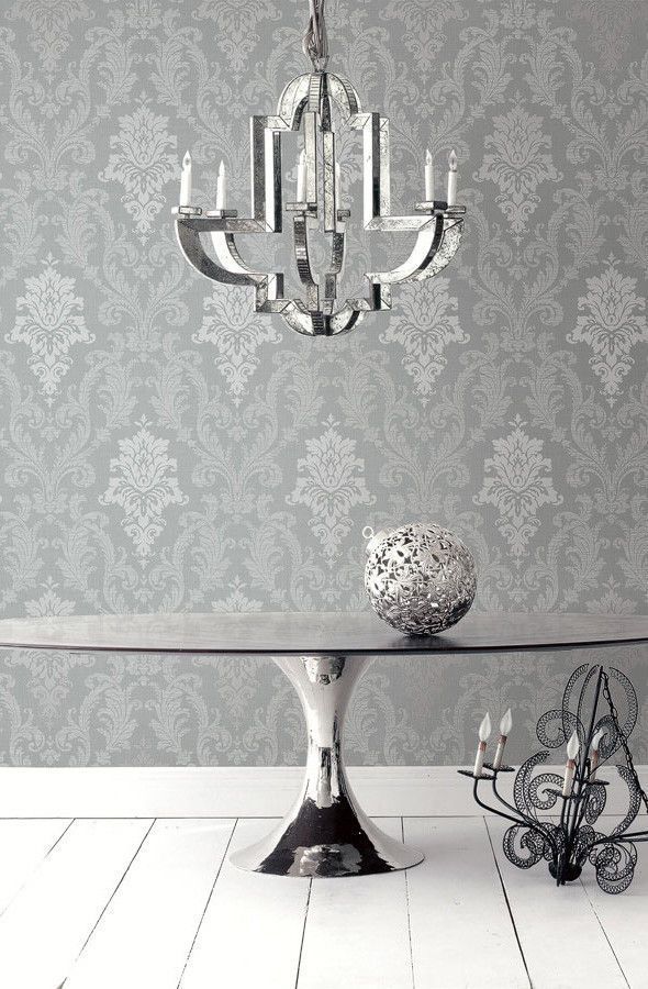 Tapete, Designtapete, antik, Glasperlenstaub, Ornamente, Schimmer, Smokey Silver