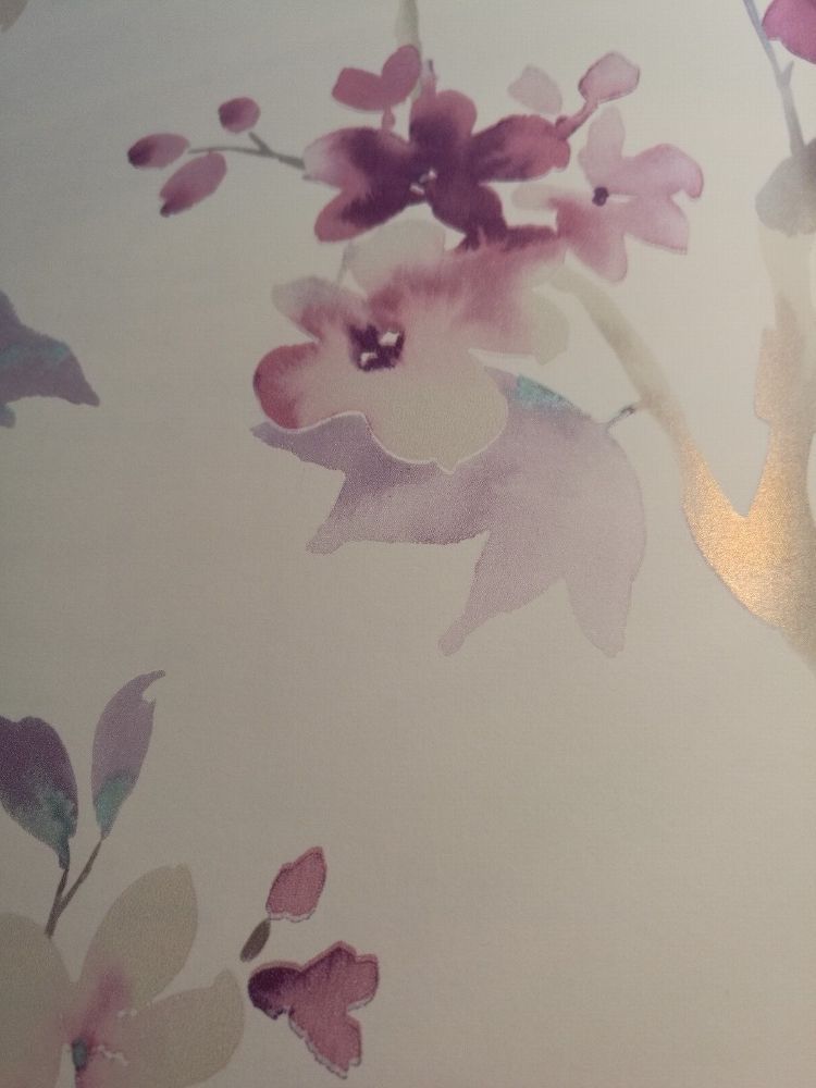 Tapete, Designtapete, Blumen, modern, Sahne, Flieder, Ecru, Braun, Blau, Cyan