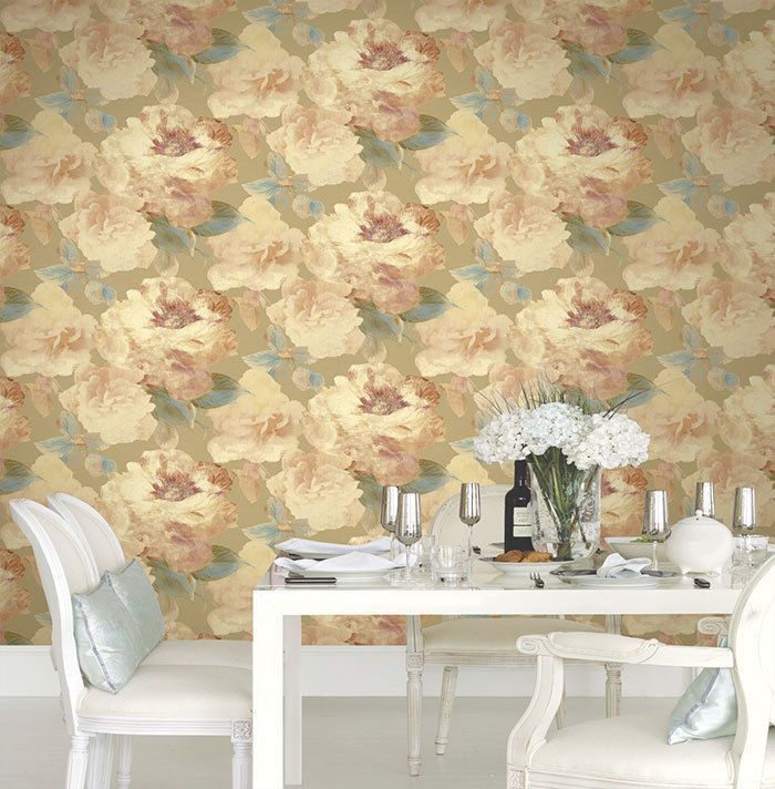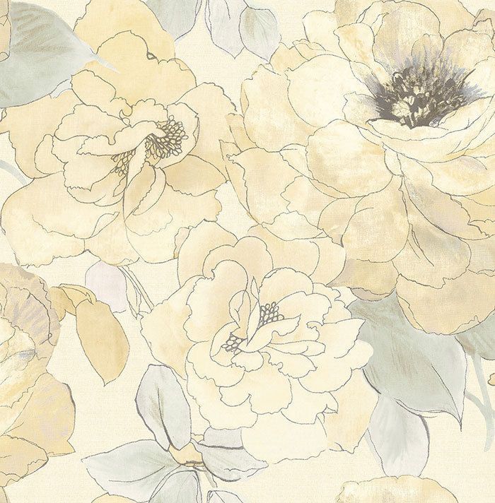 Tapete, Designtapete, Blumen, Motive, Elfenbein, Creme, hellbeige, grün, glänzend