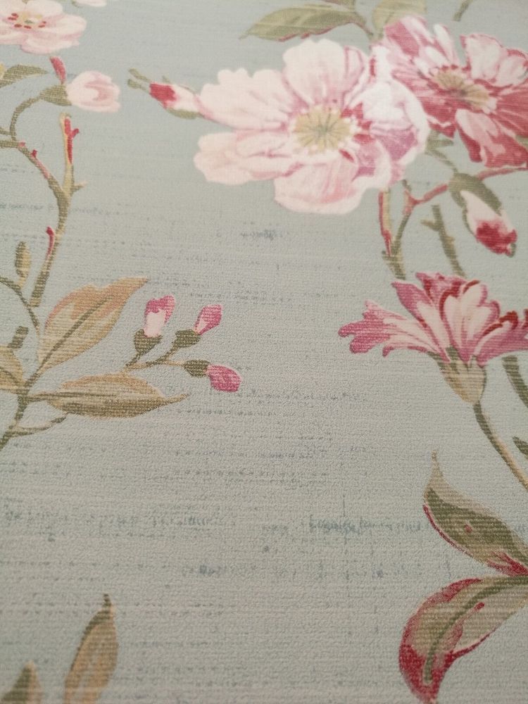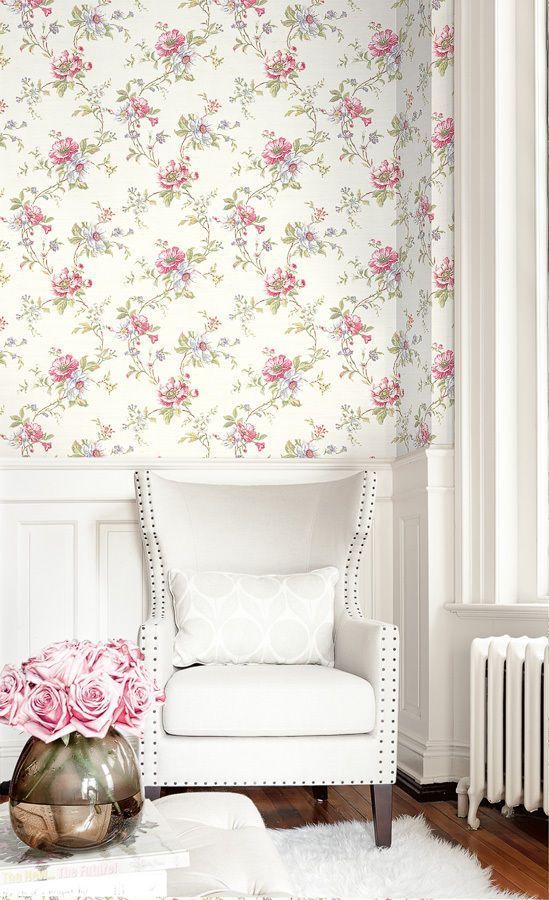 Tapete, Designtapete, floral, Seideneffekt, Malve, Rosa, Elfenbein, Aqua, Beige