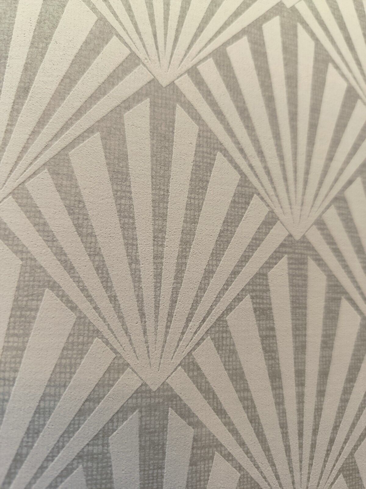Tapete, Designtapete, Vanderbilt, Ornamente, Schimmer, Eierschale, Steingrau