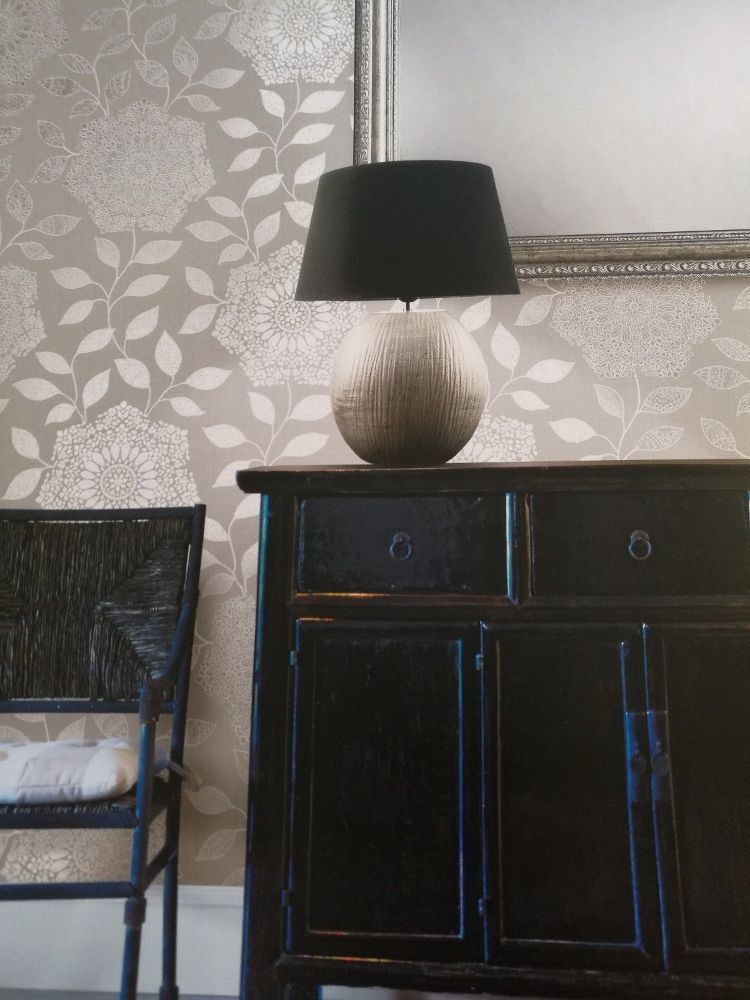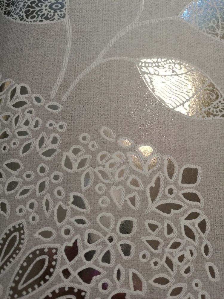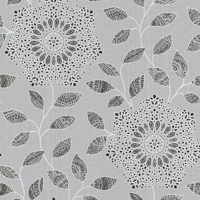 Tapete, Designtapete, Glanz, Ornamente, floral, Grau, Asche, Weiß, Silber