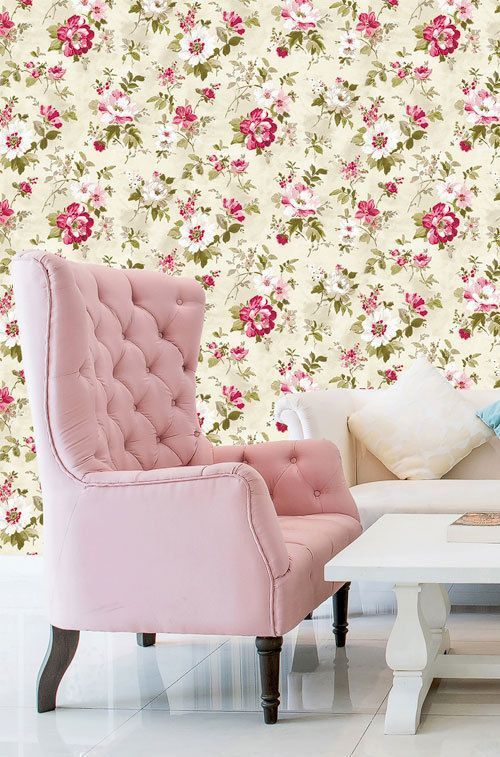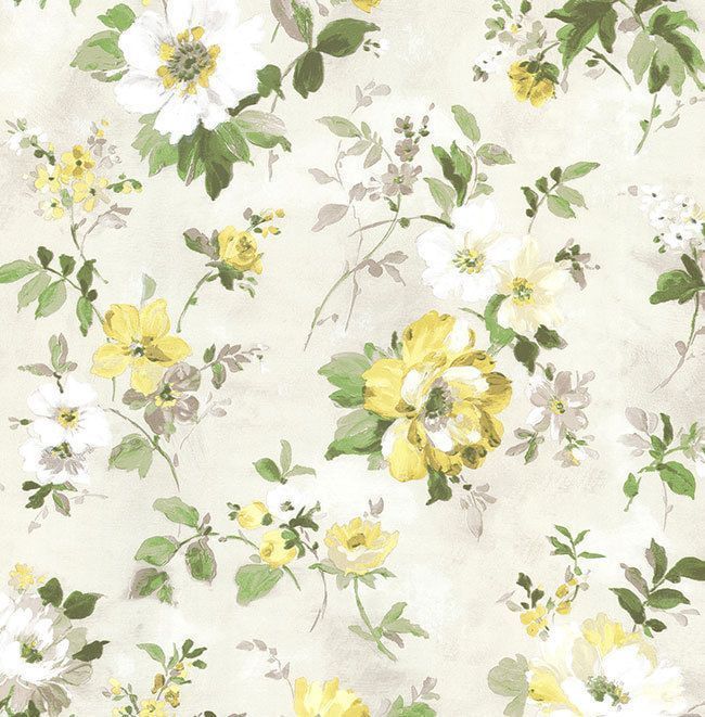 Tapete, Designtapete, Landhaus, frisch, floral, Sand, Ecru, Grün, Mais, Zitrone