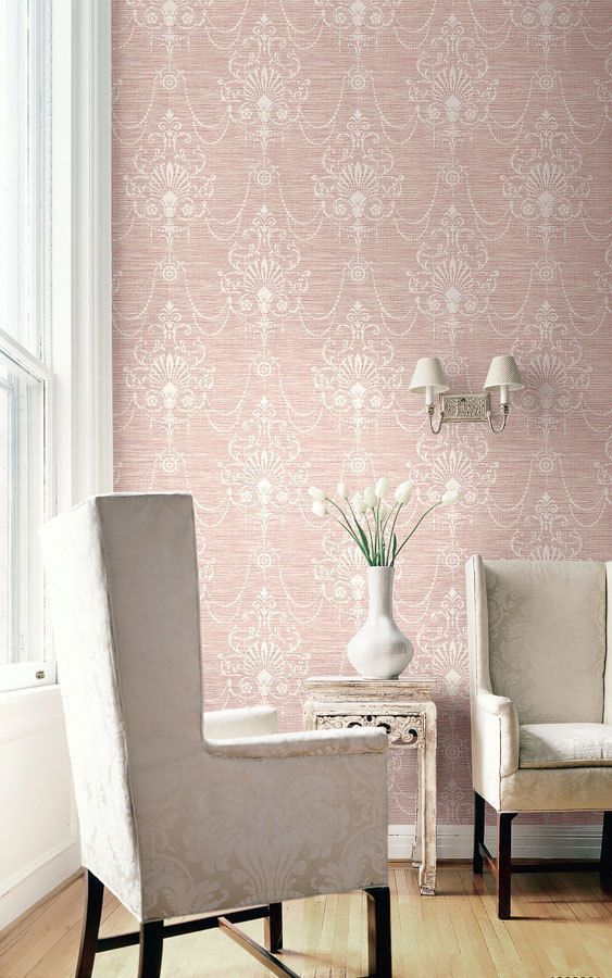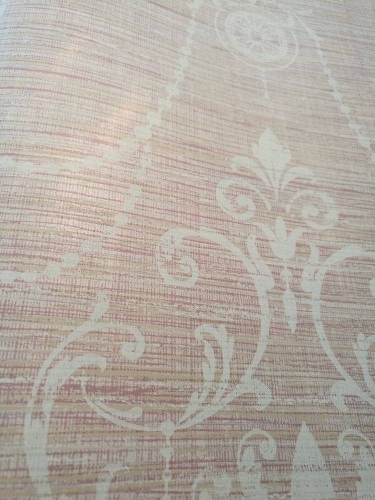 Tapete, Designtapete, Leineneffekt, Ornamente, Lachs, Rosé, Makeup, Ecru, Glanz