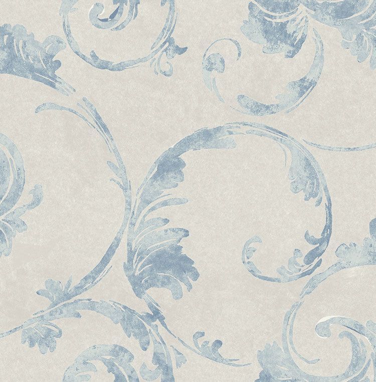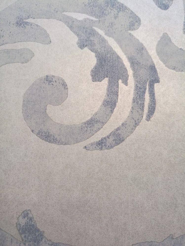 Tapete, Designtapete, Pergamentoptik, Ranken, floral, Kieselstein, Grau, Blau