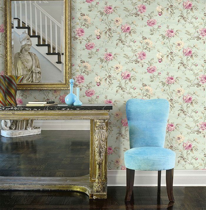Tapete, Designtapete, Pfingstrosen, Streifen, Schimmer, Mint, Türkis, Malve