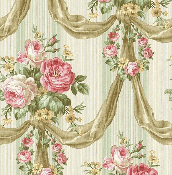 Tapete, Designtapete, Rosen, Seide, Satinband, Streifen, Glanz, rosé, grün, ecru