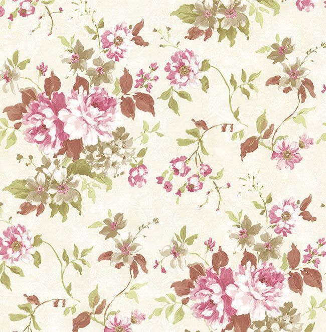 Tapete, Designtapete, Schimmer, floral, Ranken, Grün, Kaminrot, Pink, Schlamm