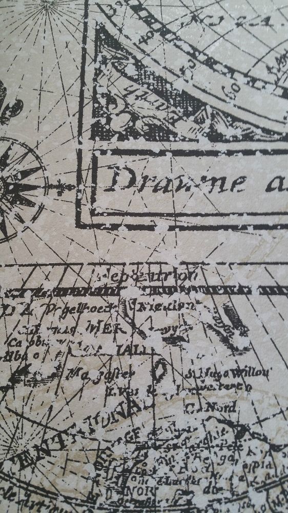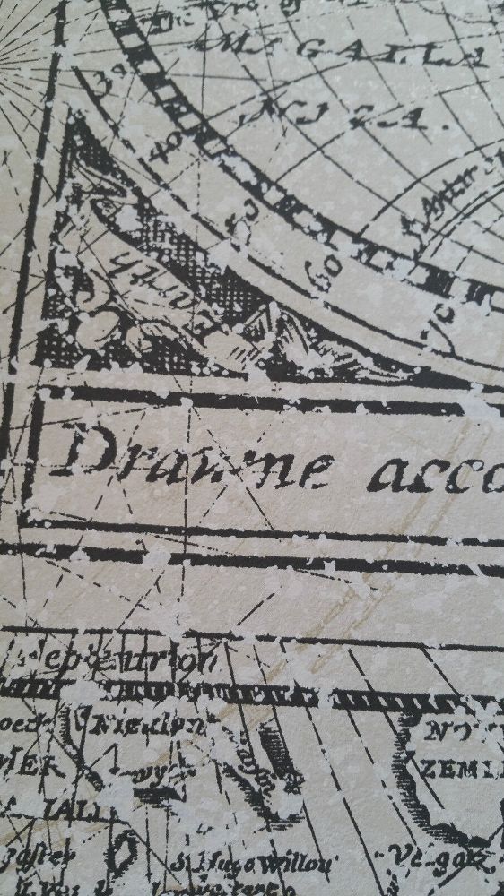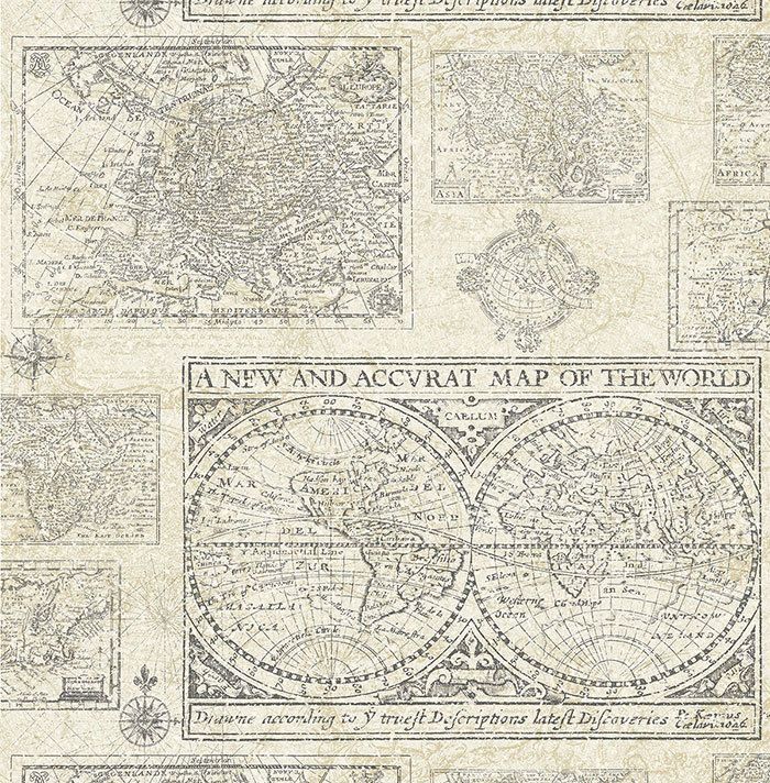 Tapete, Designtapete, Schrift, Print, Karte, Antik, Kaffeebraun, Gold, Creme