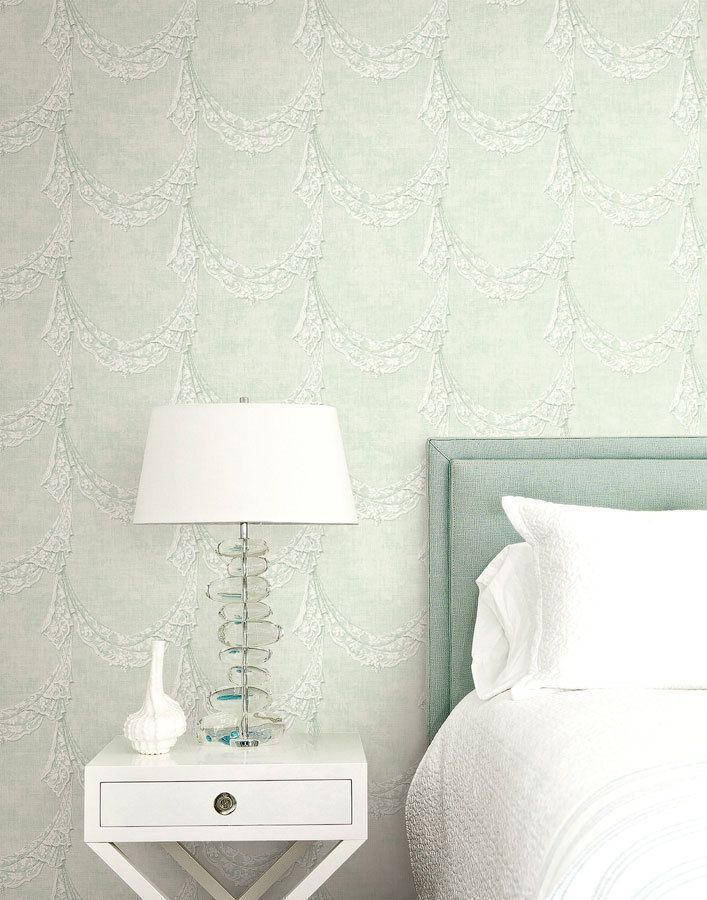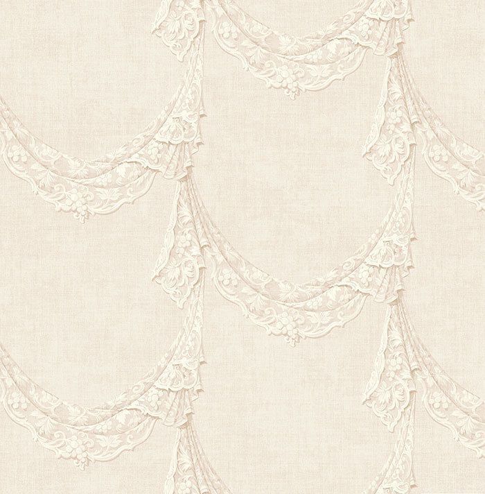 Tapete, Designtapete, Spitze, Glanz, Ranken, Ecru, Puder, Altrosé, Struktur