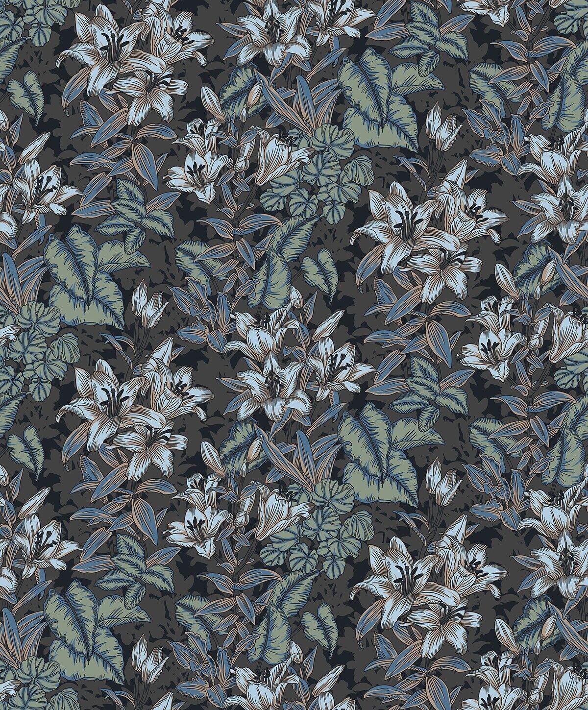 Tapete, Designtapete, floral, Denimoptik, Betongrau, Offwhite