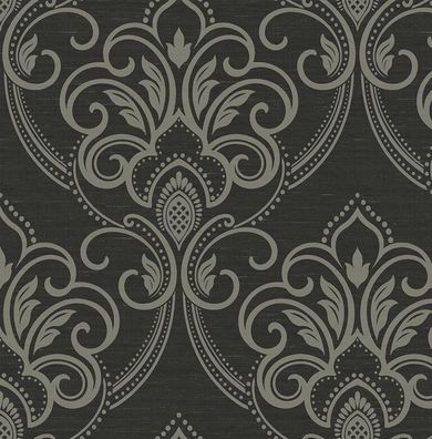 Tapete, Designtapete, Vanderbilt, Ornamente, Schimmer, Eierschale, Steingrau