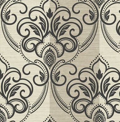 Tapete, Designtapete, Vanderbilt, Wappen, Schimmer, Taupe, Offwhite