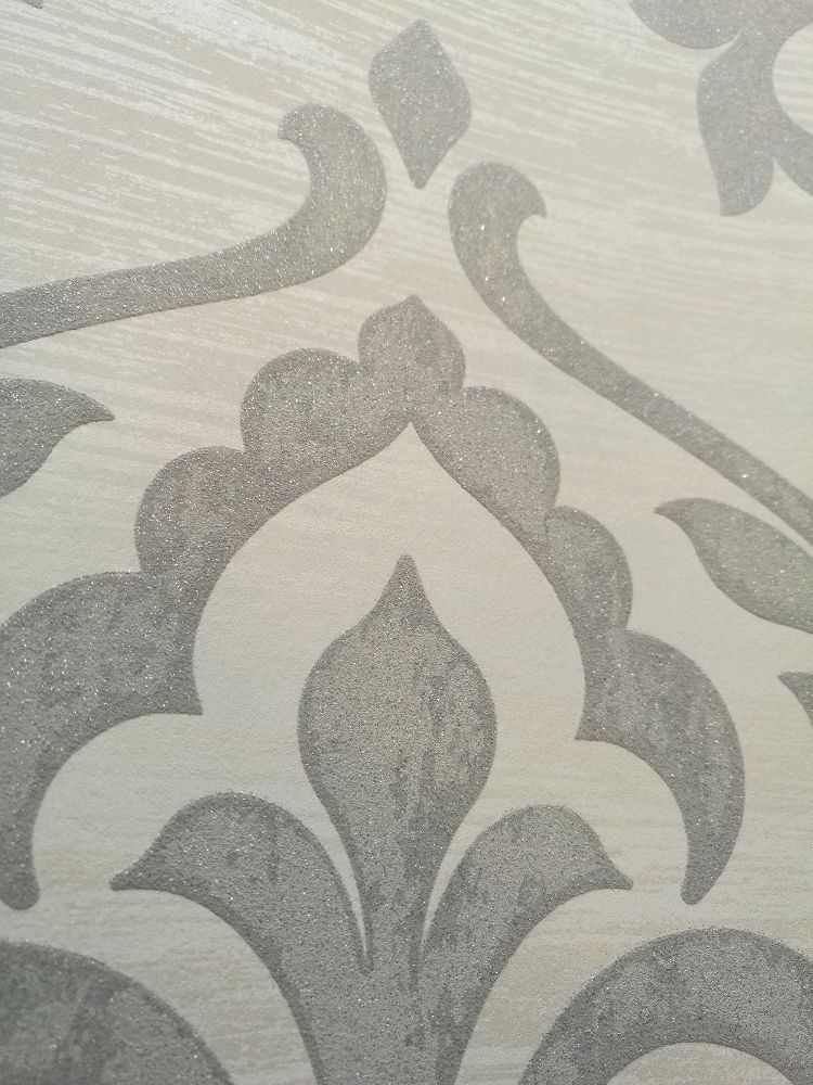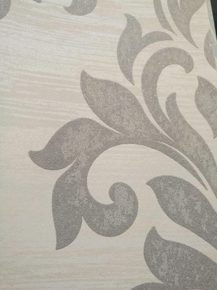 Tapete, Designtapete, Struktur, Ornamente, floral, Glitzer, Weiß, Creme, Grau