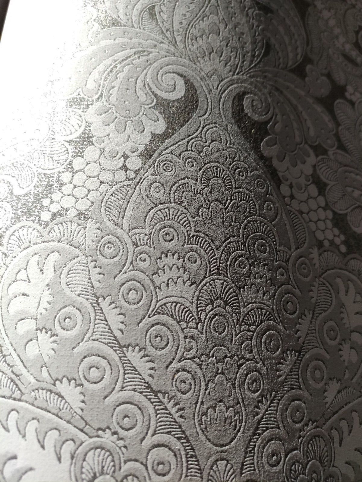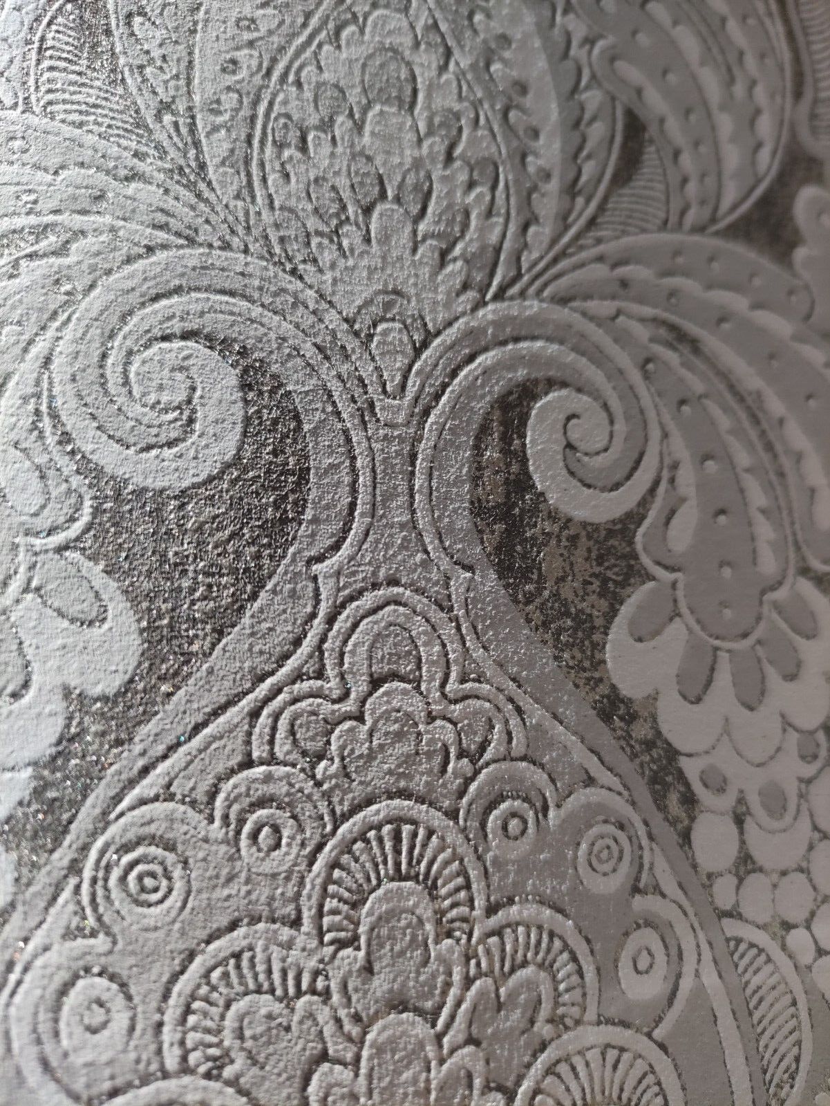 Tapete, Designtapete, Hochglanz, Ornamente, Silber, Eierschale
