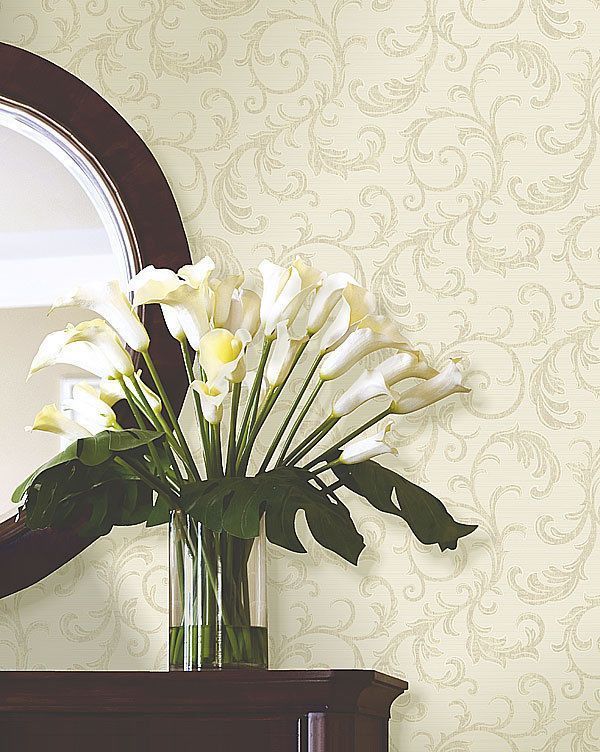 • Tapete, Designtapete, Vanderbilt, Ornamente, Schimmer, Eierschale, Steingrau