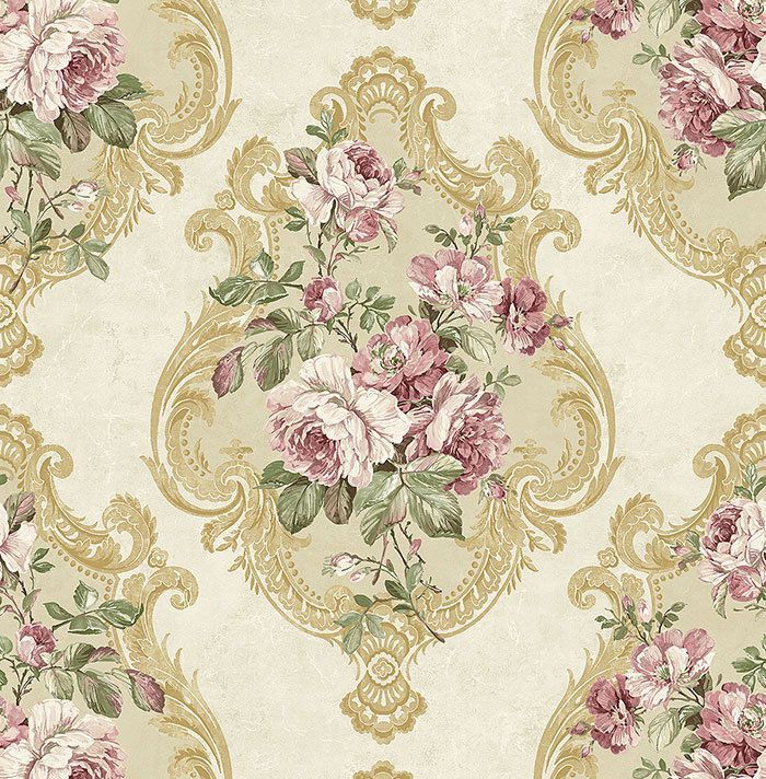 Tapete, Designtapete, Vanderbilt, Blumendekor, Schimmer, Weinrot, Karamell, Sand