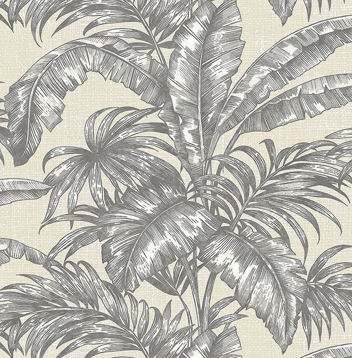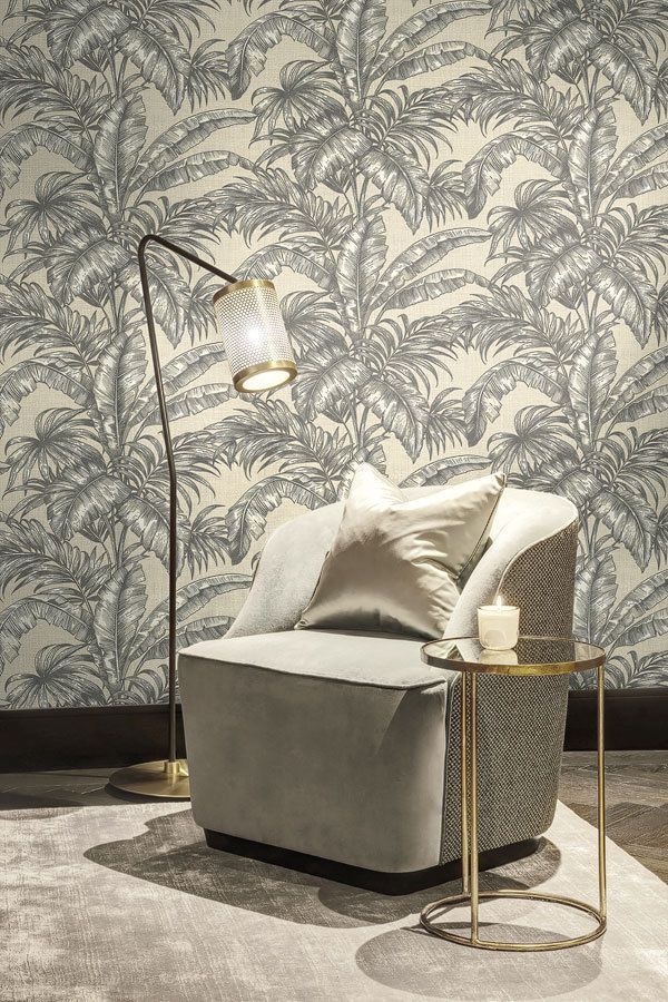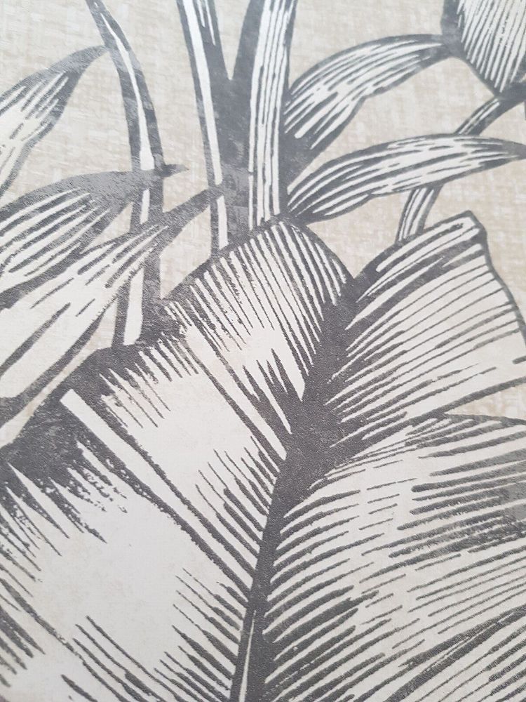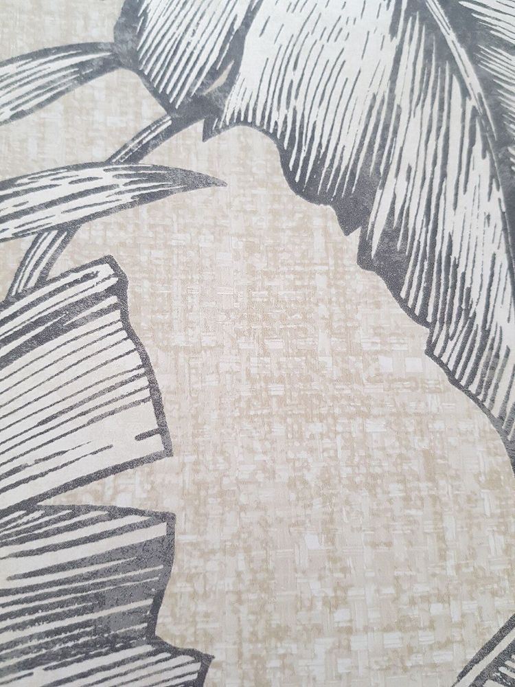 Tapete, Designtapete, Vanderbilt, Webstoff, grob, Blätter, Schimmer, Grau/ Beige