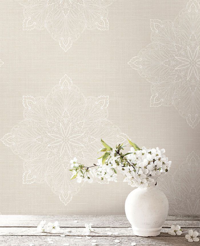 Tapete, Designtapete, WebStruktur, Schimmer, Paisley, Schlammbraun, Eierschale