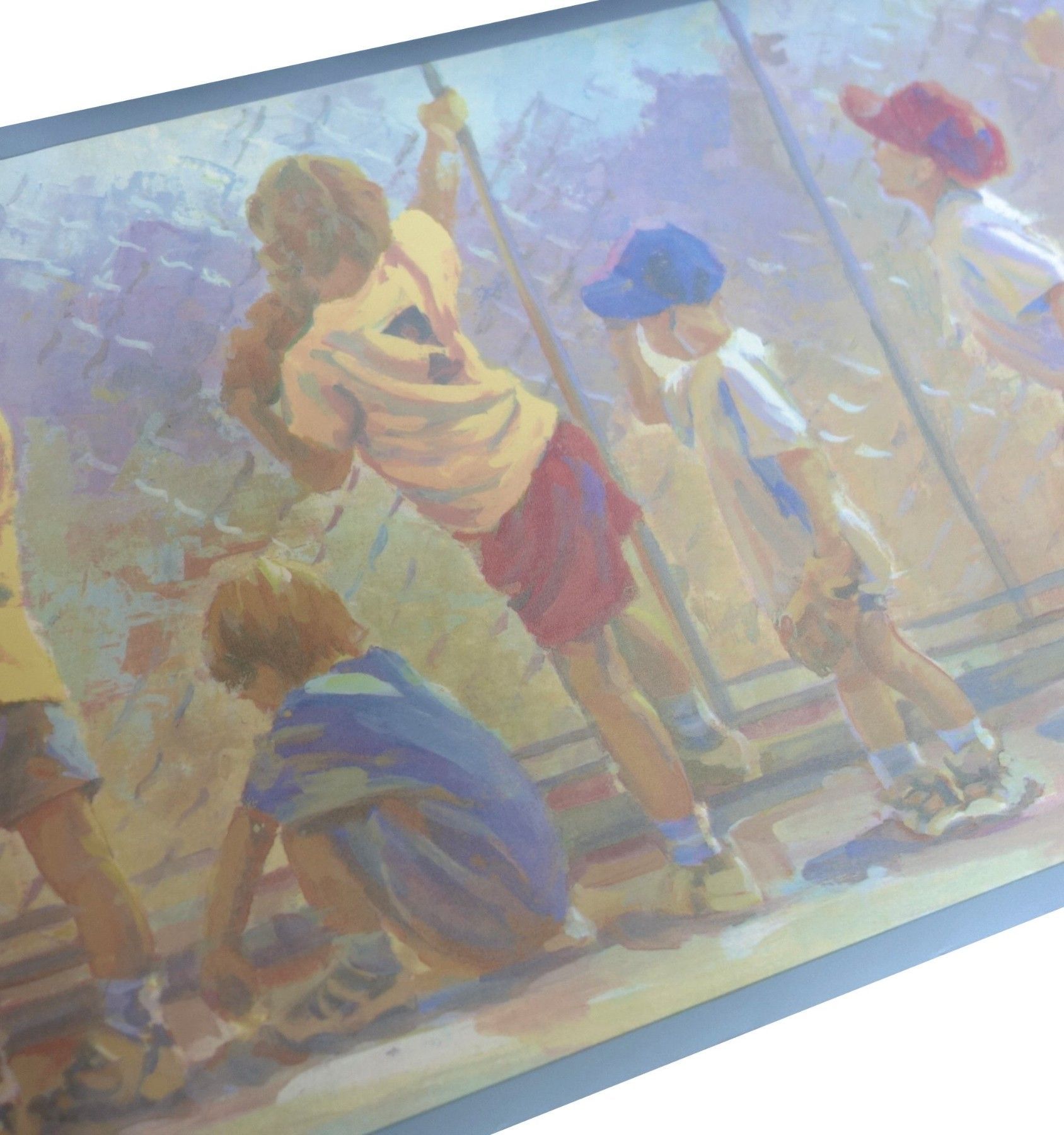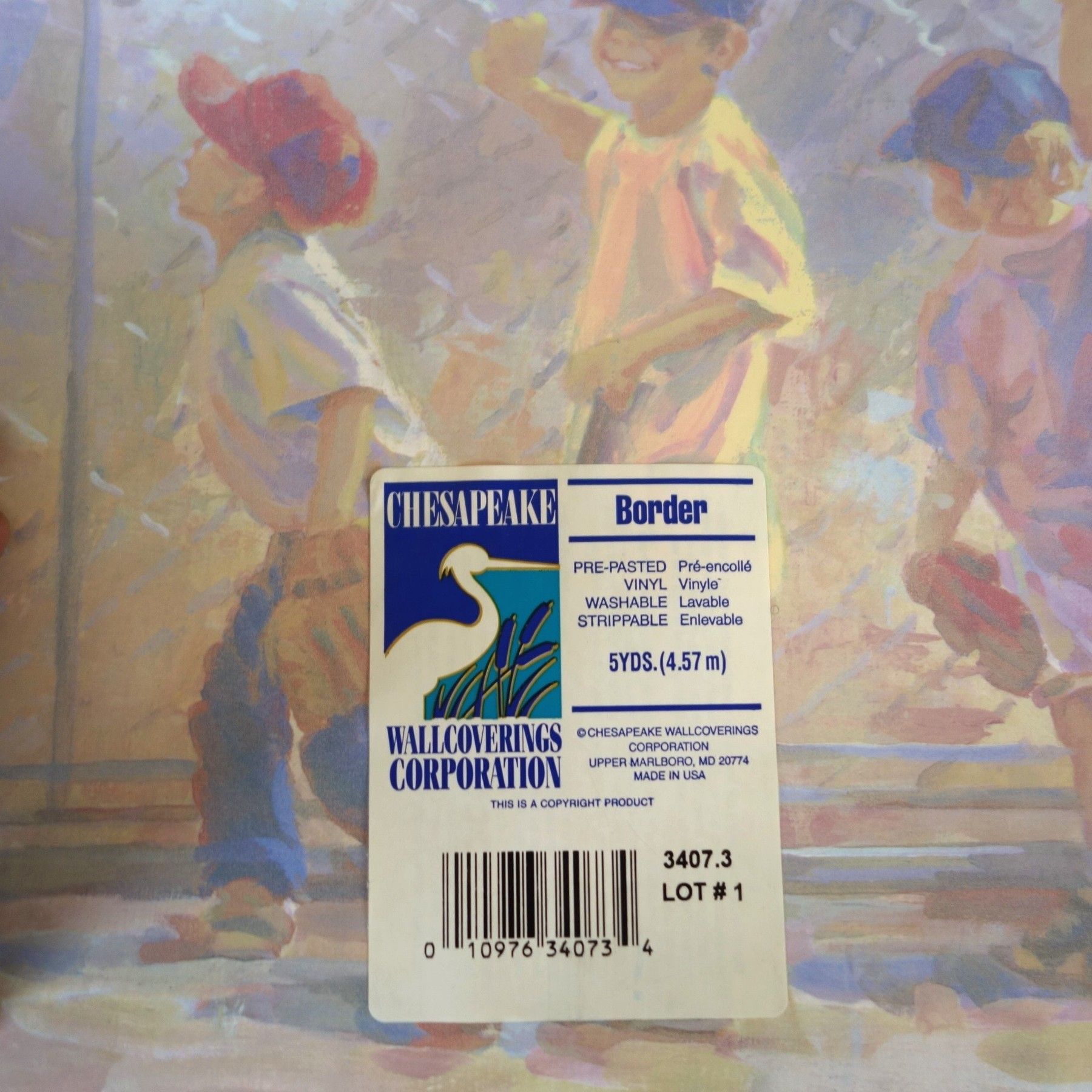 Sonderangebot XL breite Tapetenborte Chesapeake Baseball Kids made in USA Oberfläche: feines glattes Papier Rollenbreite: ca. 25 cm Rollenlänge: ca. 4,57 m nicht selbstklebend zum Kleben empfehlen wir Bordürenkleber oder einen guten Tapetenkleister