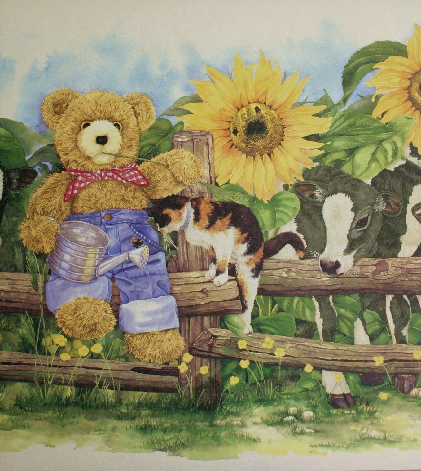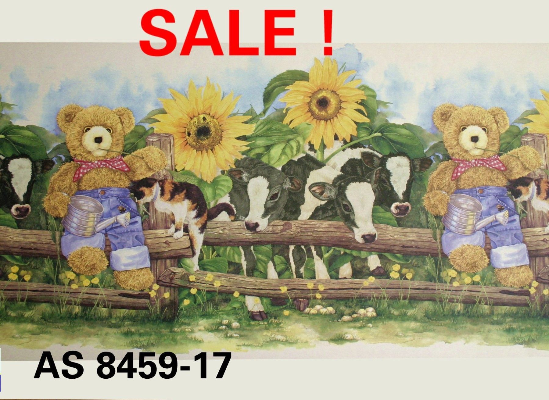 Sonderangebot XXL breite Tapetenborte AS Borte 8459-17 Teddy mit Katze und Kühen Oberfläche: Flachvinyl Rollenbreite: ca. 52 cm ! Rollenlänge: ca. 5 m nicht selbstklebend zum Kleben empfehlen wir Bordürenkleber oder einen guten Tapetenkleister