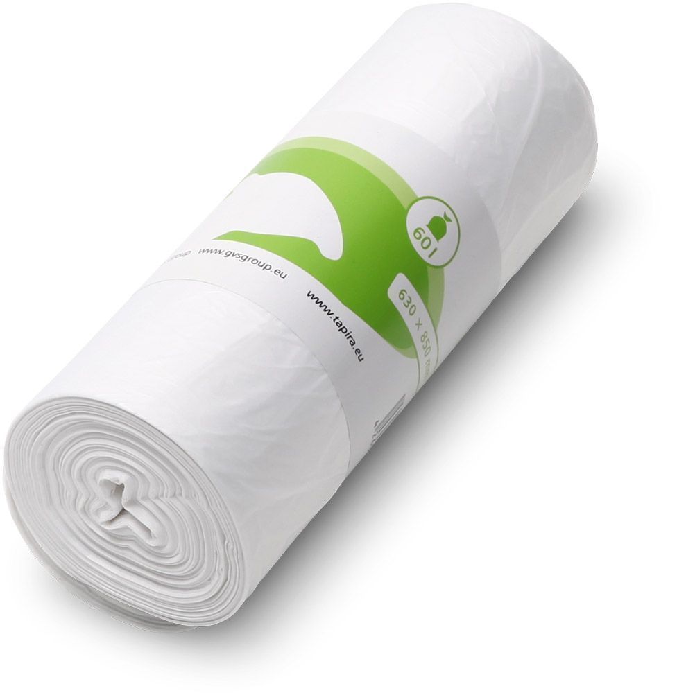 TAPIRA pur Polybeutel, HDPE, 60L, weiß, 630x850mm, 8my, 40St/Ro