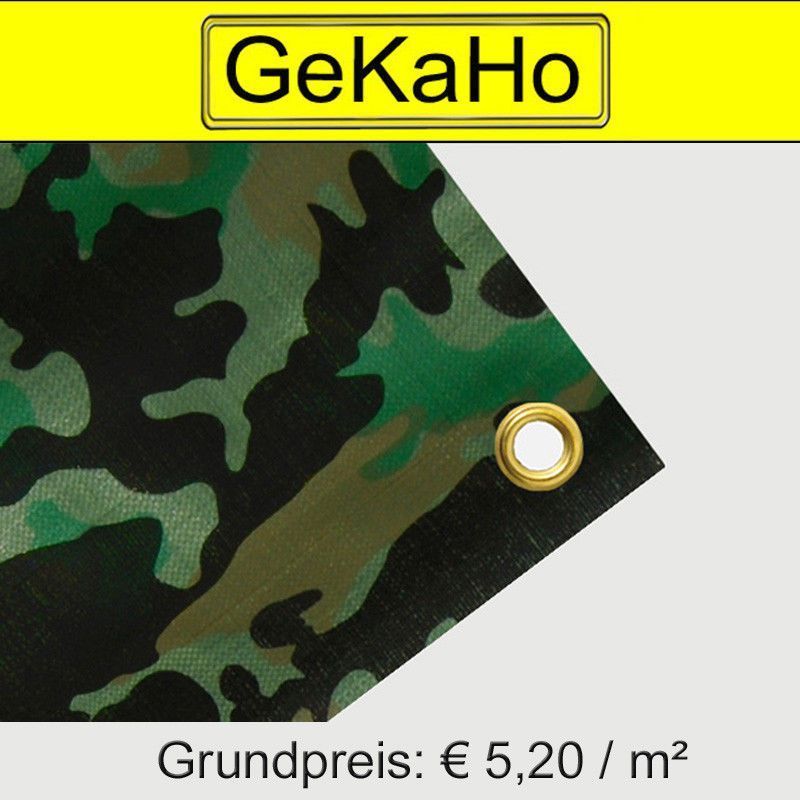 Der angegebene Preis ist inkl. 19% MwSt. Zzgl. den unten angegebenen Versandkosten. Grundpreis: EUR 5,20 m² Universal Abdeckplane, Fleck-Tarnplane in Military Look mit Ösen alle 1,00 m Größe: 2 x 2 m (Ausführung stark ca. 200g m²) Das Angebot gilt für eine Fleck-Tarnplane aus PE in bester Industrie-