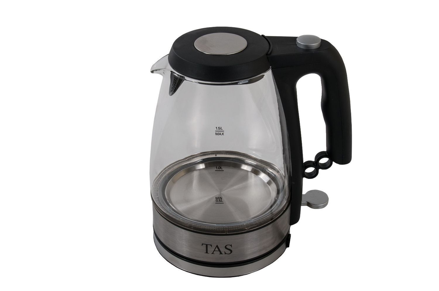 TAS Glas LED Wasserkocher 1,5 Liter schnurlos 1800W 360° Teekocher Teekessel