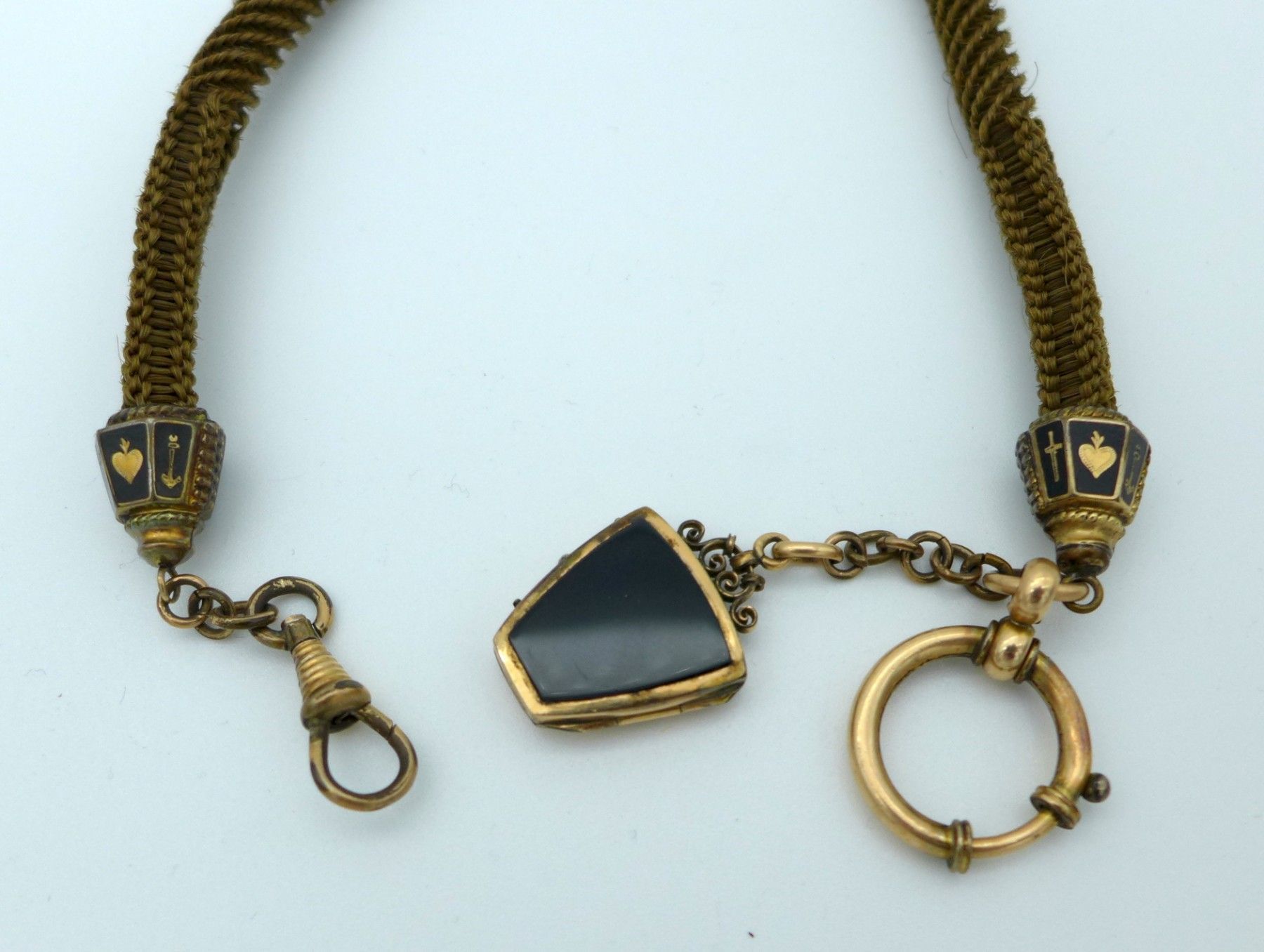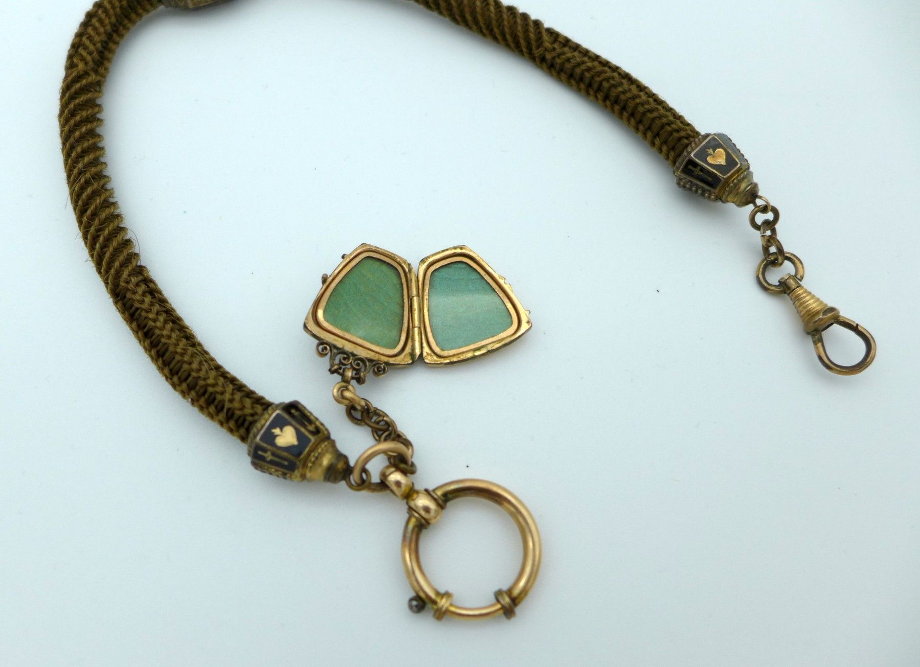 Taschen Uhrkette Haarkette Foto Medaillon Anhänger Glaube Liebe Hoffnung Onyx