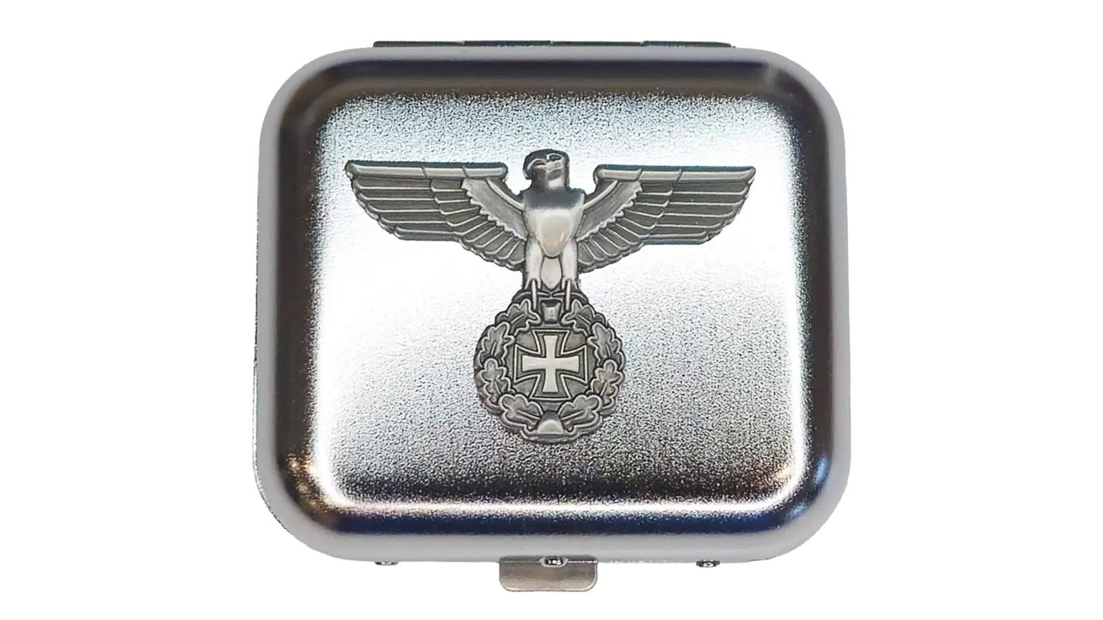 Beschreibung Details Details Details Taschenaschenbecher Silber Reichsadler EK Eisernes Kreuz Dieser elegante silberne Taschenaschenbecher ist die perfekte Lösung für Raucher, die ihre Zigaretten stilvoll und umweltbewusst entsorgen möchten. Der Aschenbecher ist aus robustem, silberfarbenem Metall g