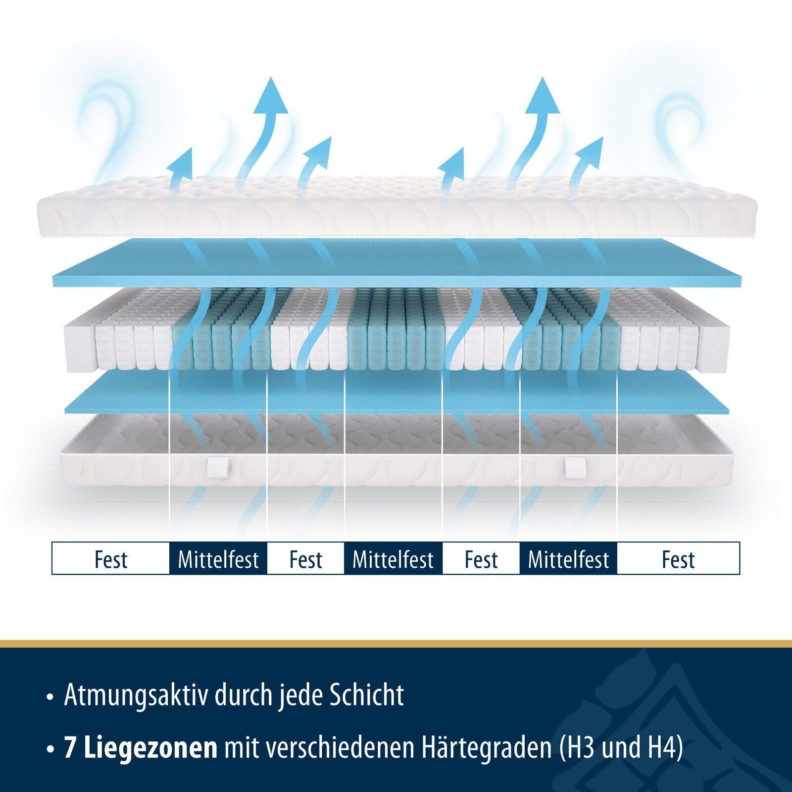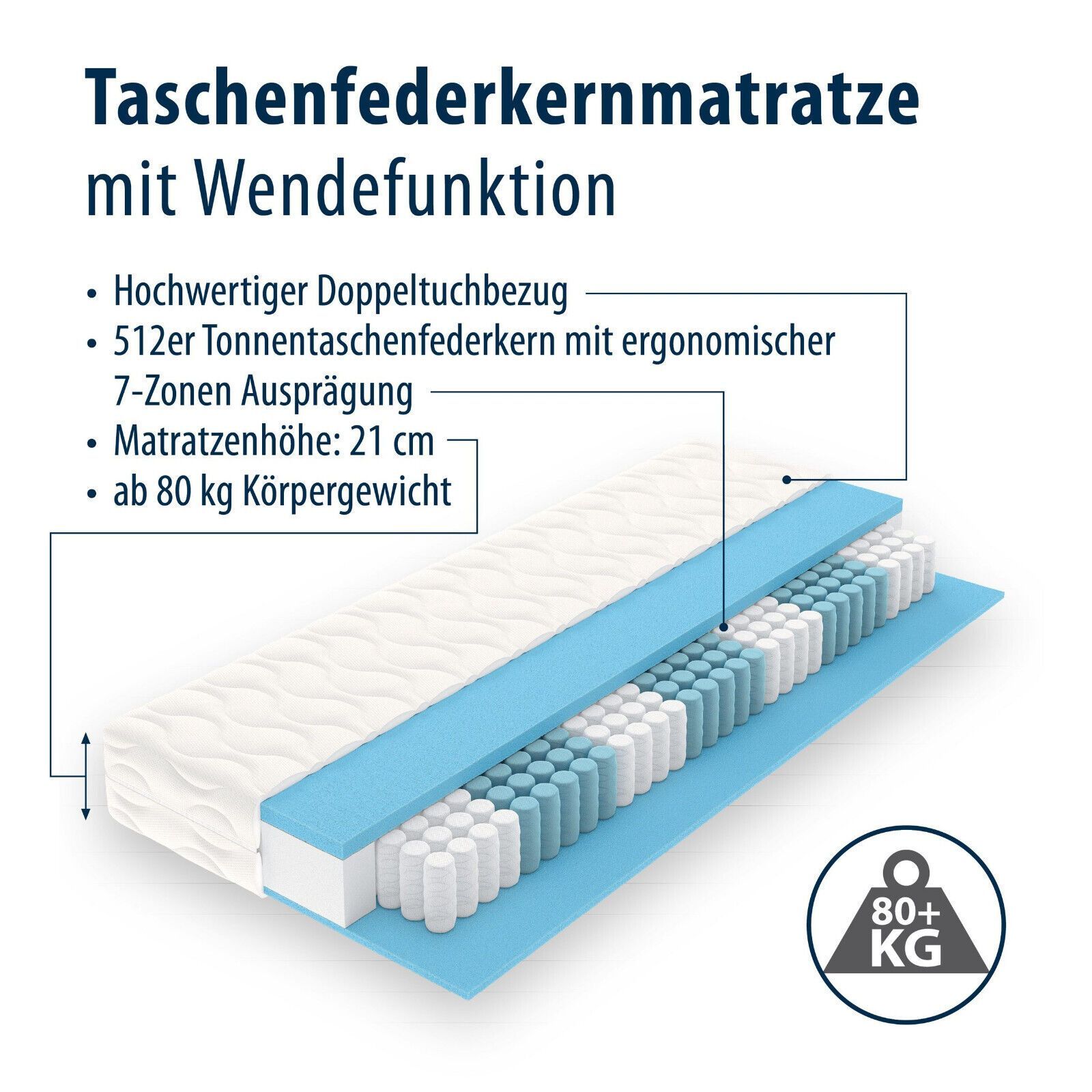 Normal 0 21 false false false DE X-NONE X-NONE · Ergonomische Matratze mit Taschenfederkern, Höhe ca. 21 cm Hohe Punktelastizität und 7 Liegezonen für hohen Liegekomfort Matratze H3 und H4, Härtegrad-Anpassung durch Wenden der Matratze Atmungsaktiver Federkern für eine optimale Durchlüftung und Feuc