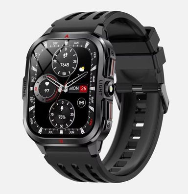 • Smartwatch 1,96 Zoll LED Taschenlampe SOS BT IP68 Fitness uhren Herren Outdoor Q