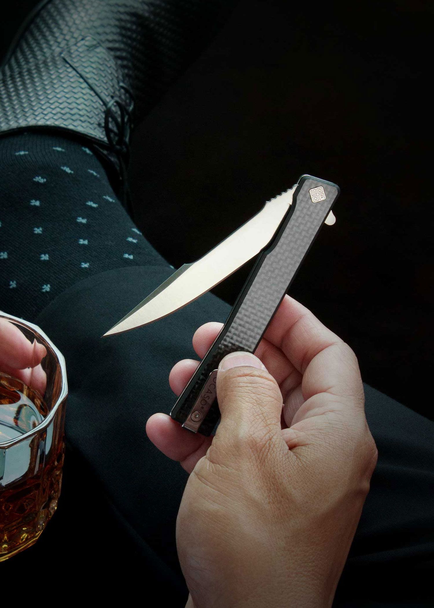 Taschenmesser Solstice, Harpoon, Karbon, satiniert, Ocaso Knives