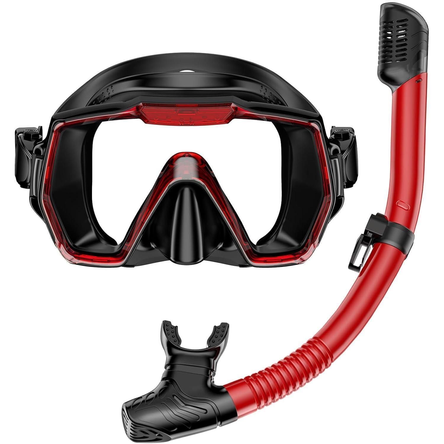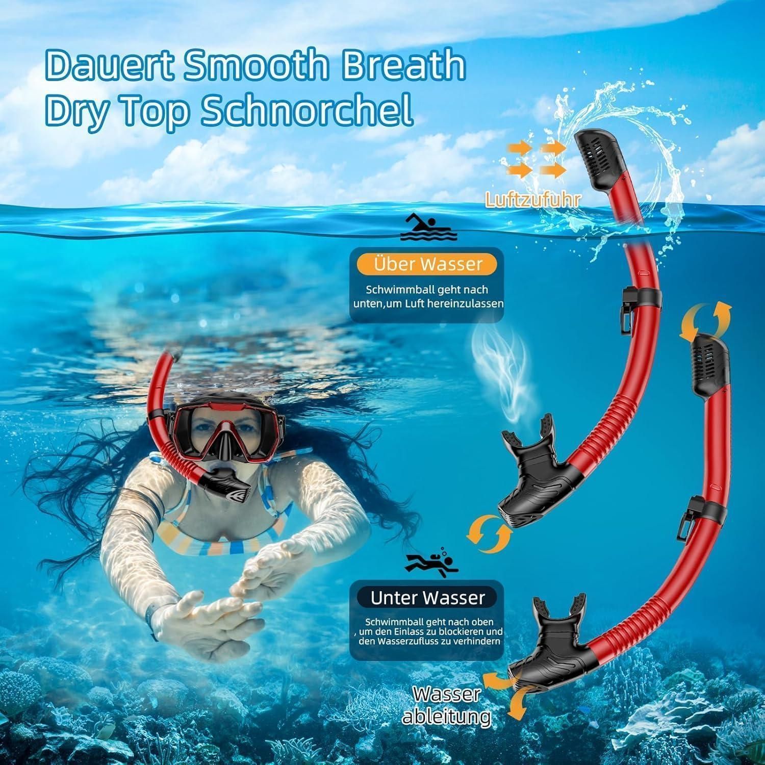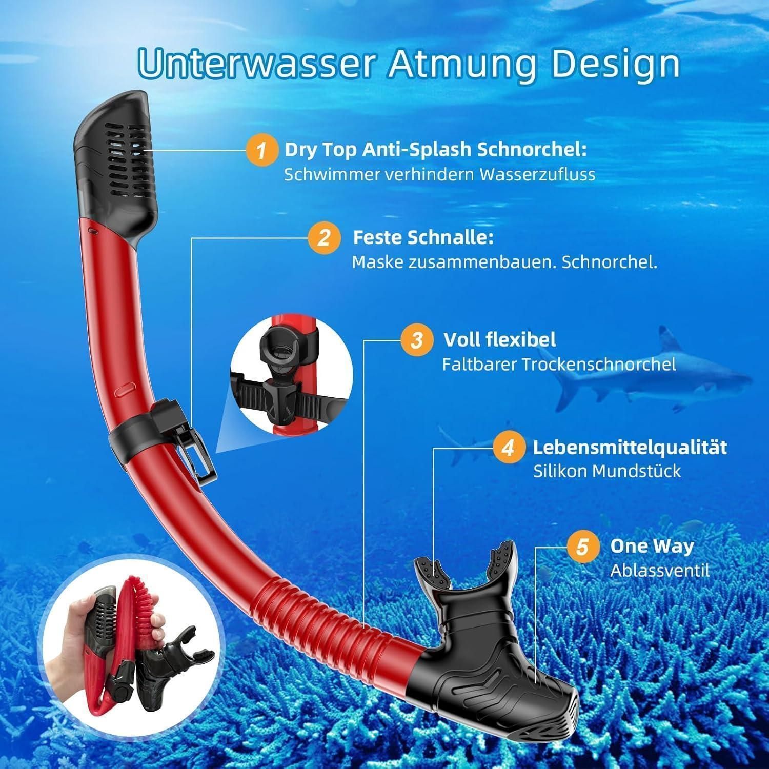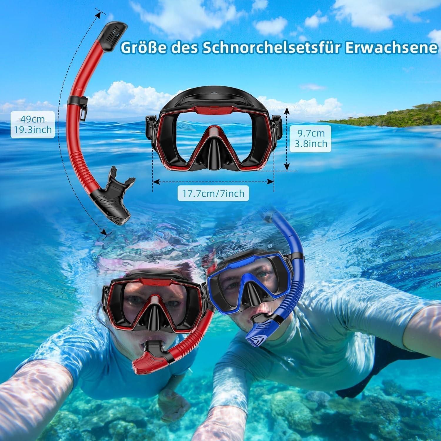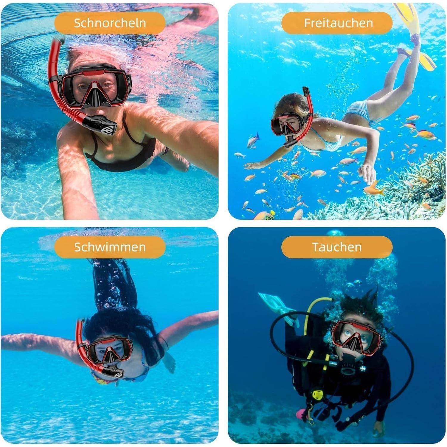 Tauchermaske Schnorchelset Erwachsene Anti-Beschlag Panorama Schwarz