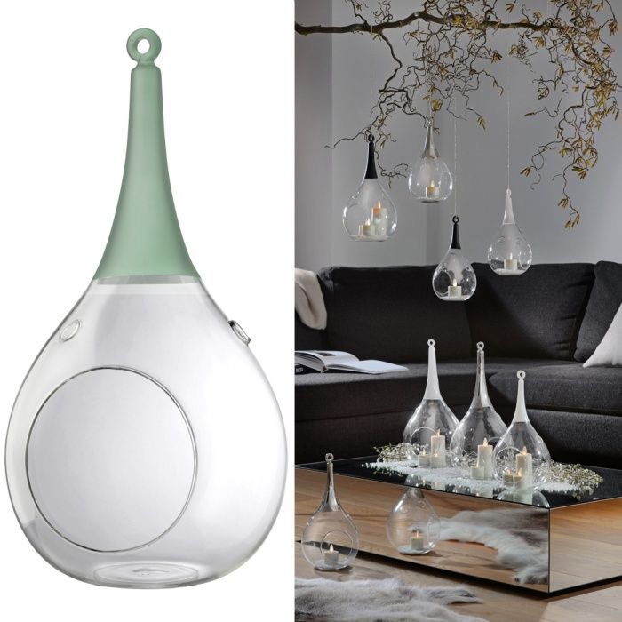 Sompex Taura grün groß Windlicht zum aufhängen Glas Hängedekoration