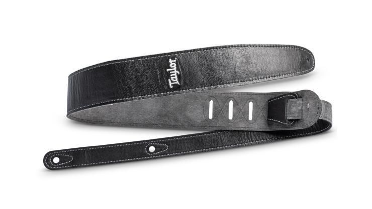Taylor Suede Black Leather Silver Logo Gitarrengurt Farbe: Schwarz Taylor Logo (silber)