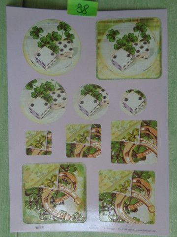 TBZ 3D Stanzbogen geprägt & Folienverziert Glück Kleeblatt Würfel Hufeisen