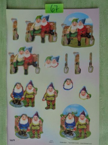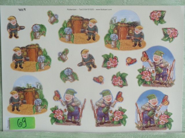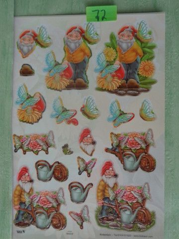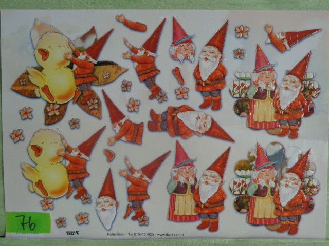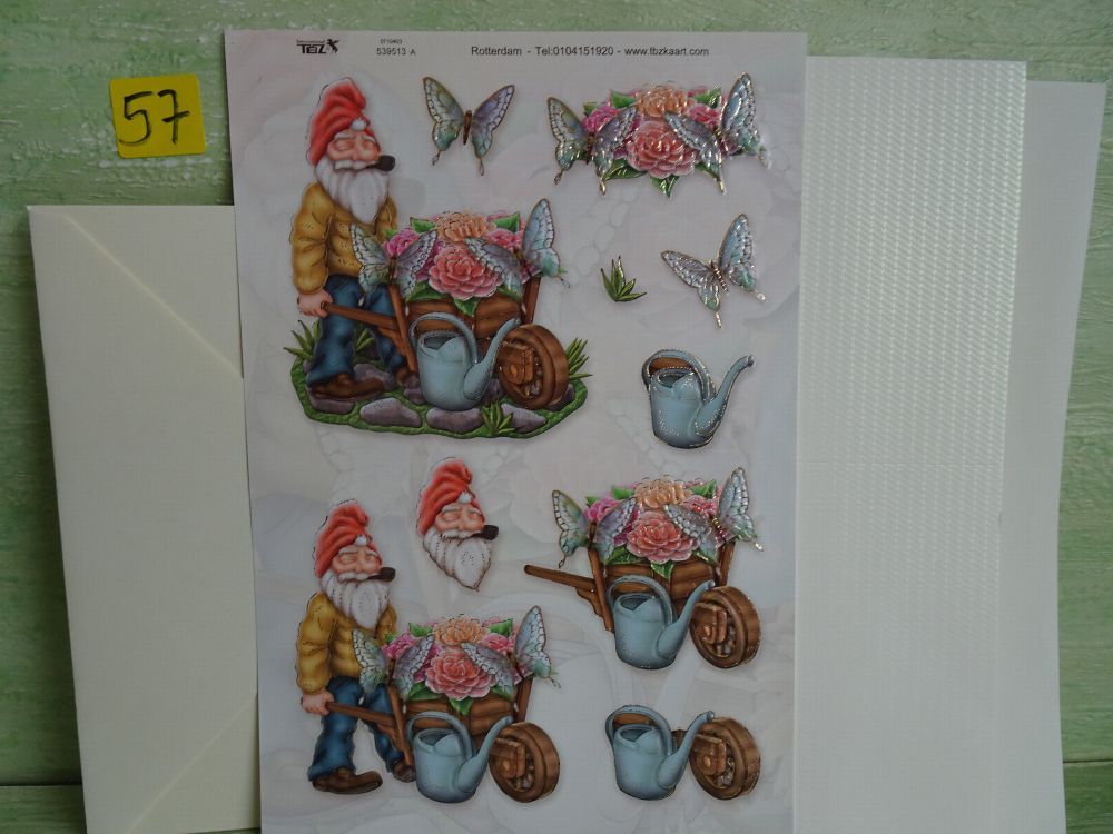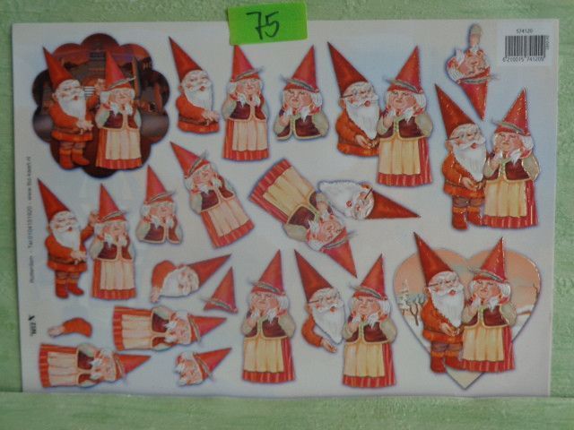 TBZ 3D Stanzbogen geprägt & Folienverziert : Wichtel Gnome Gartenzwerge