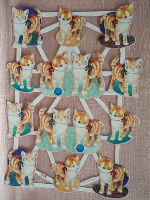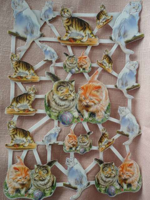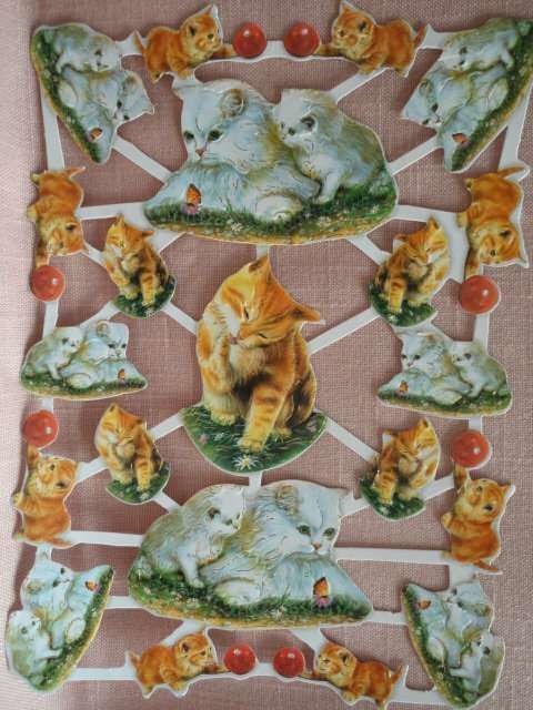 TBZ Glanzbilder-Bogen geprägt & folienverziert : KATZEN - AusWahl -