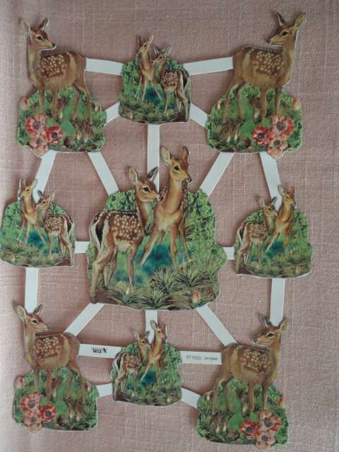 TBZ Glanzbilder-Bogen geprägt & folienverziert : REHE Tiere des Waldes