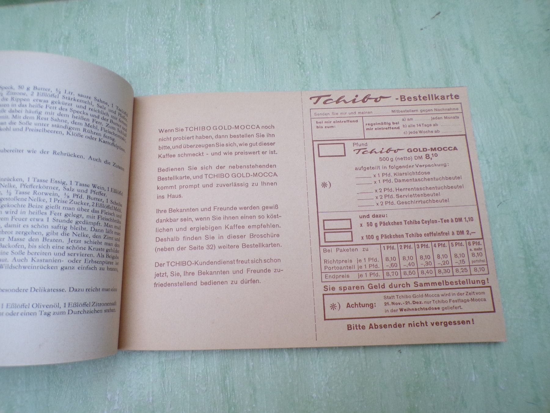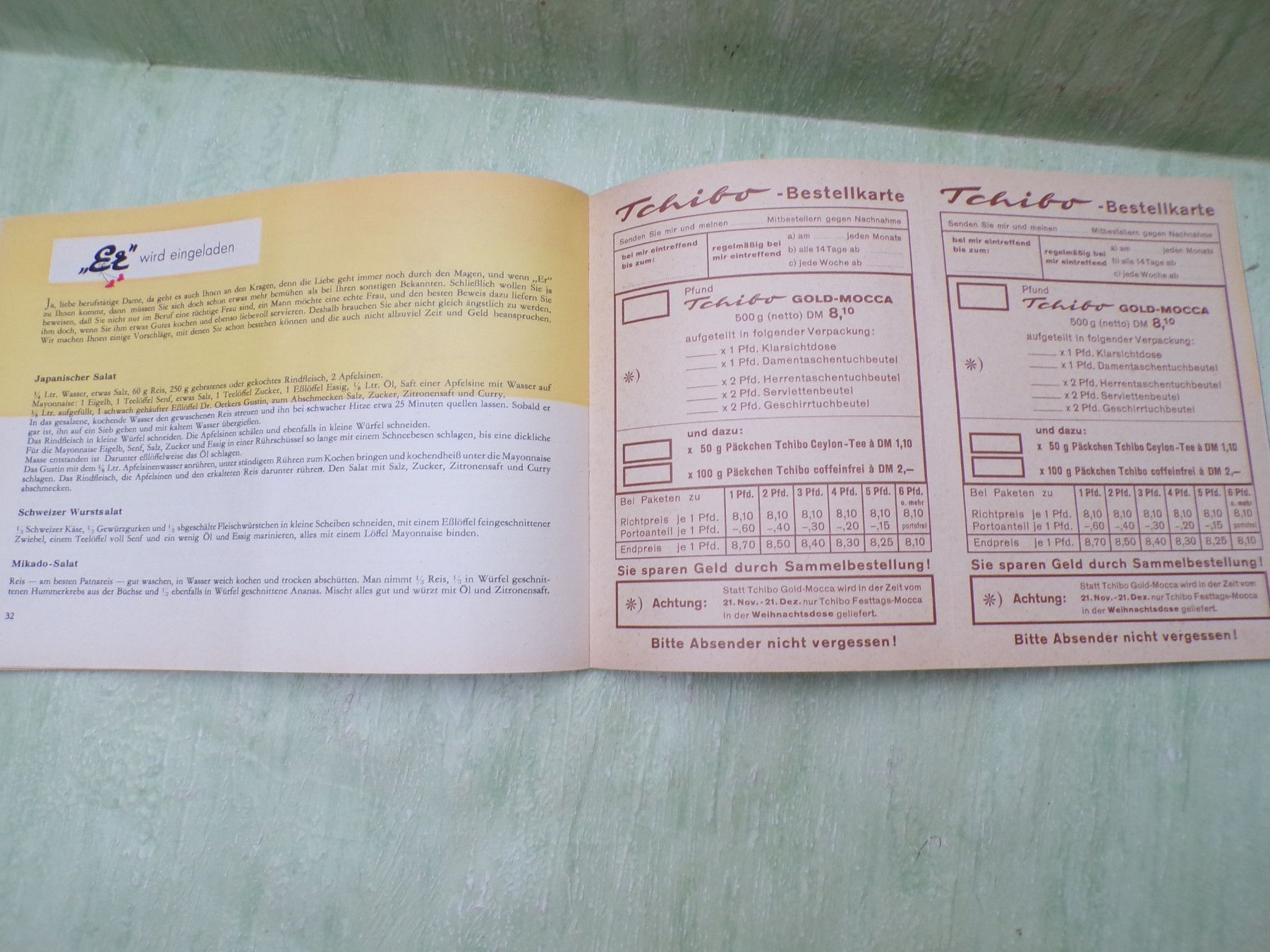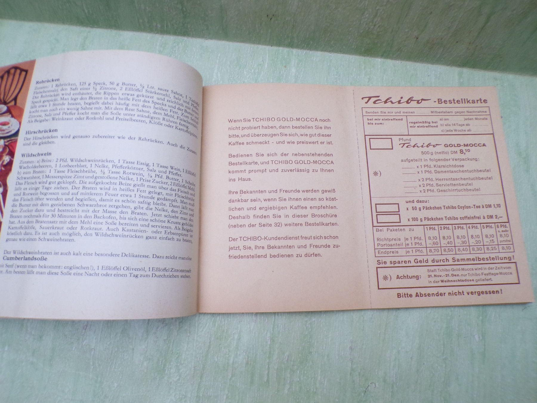 * * * Sammeln & Seltenes - Reklame & Werbung * * * * ... aus Freude an schönen Dingen ..... Hefte zur Auswahl . Tchibo Leicht und lecker mit vielen Rezepten , reich bebildert 35 Seiten . Herausgeber: Tchibo Frisch Röst Kaffee Max Herz Zustand gut+ . oder und . Tchibo bittet zu Gast Ratschläg
