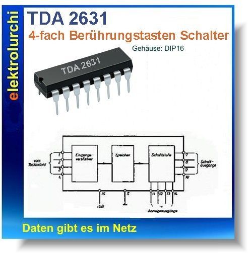 Sie bieten hier auf folgenden Artikel 1 Stück TDA2631 - 4-fach Berührungstasten TV Touch Sensor DIP16, Philips