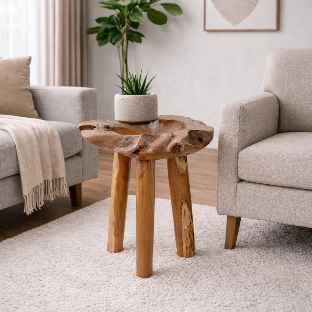 Teak Beistelltisch BIG BOWL ca.50cm Nachttisch Blumenhocker Massivholz Teaktisch