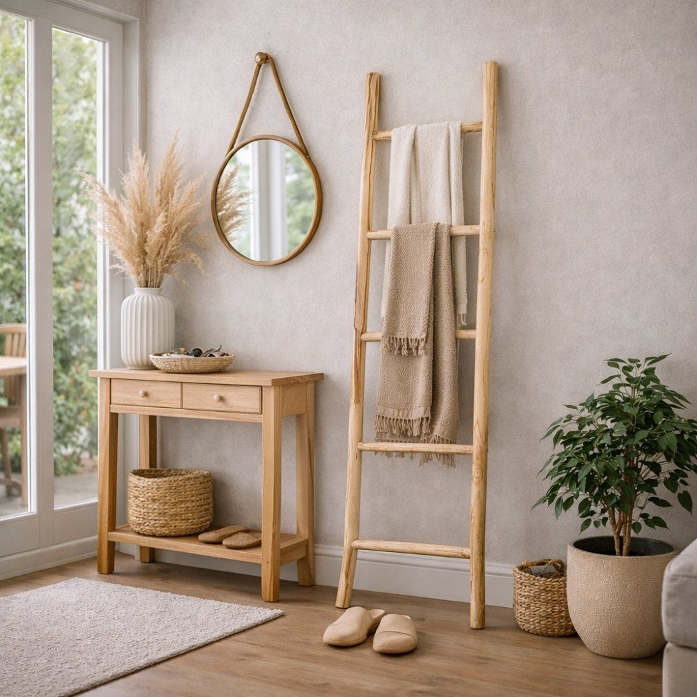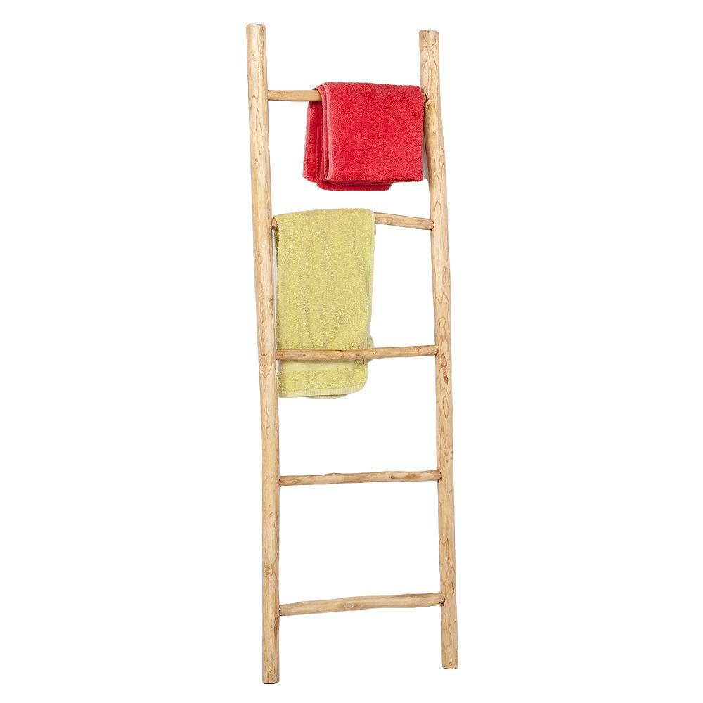 Teak Deko-Leiter KEPALA ca. H150cm Natural Handtuchhalter Kleiderständer Regal