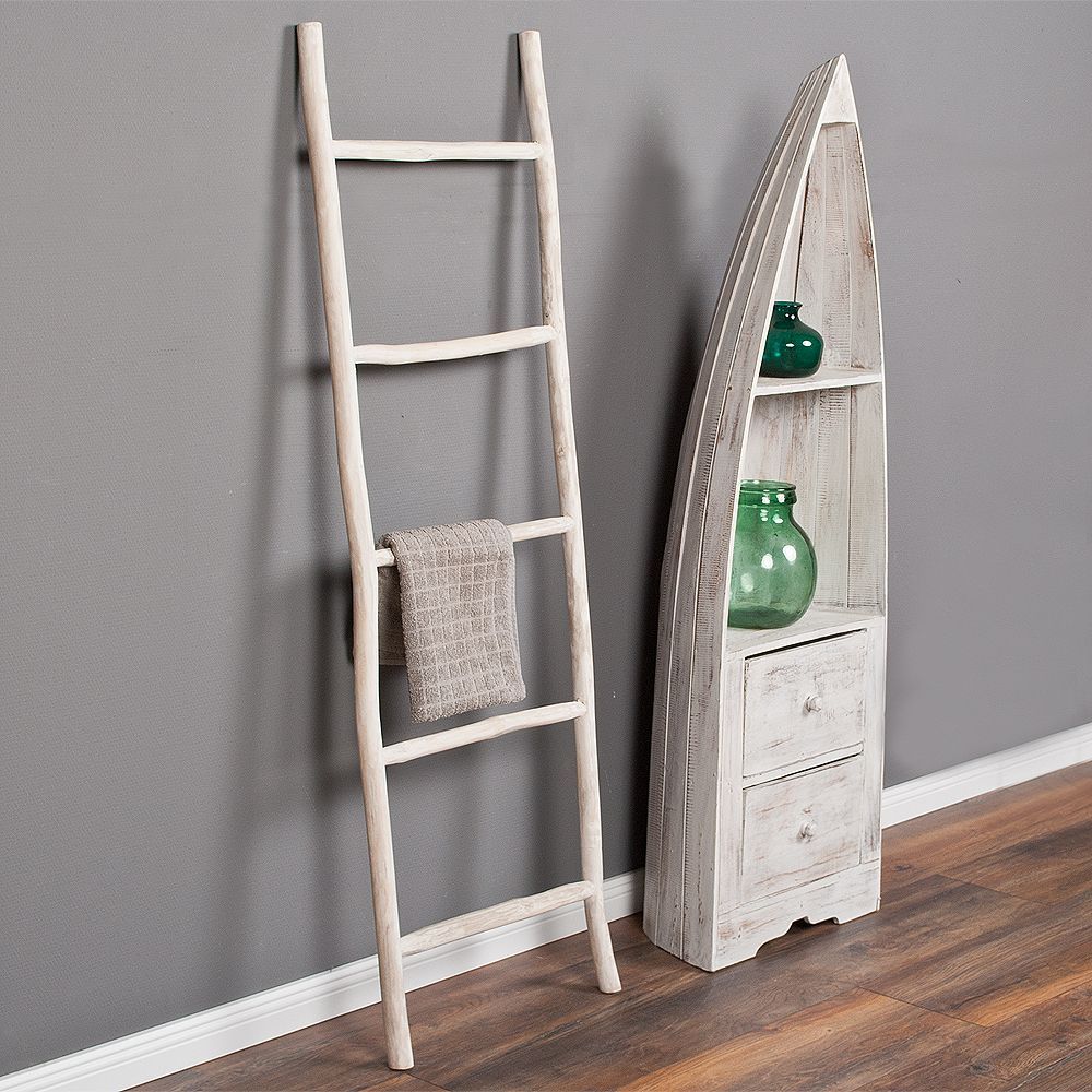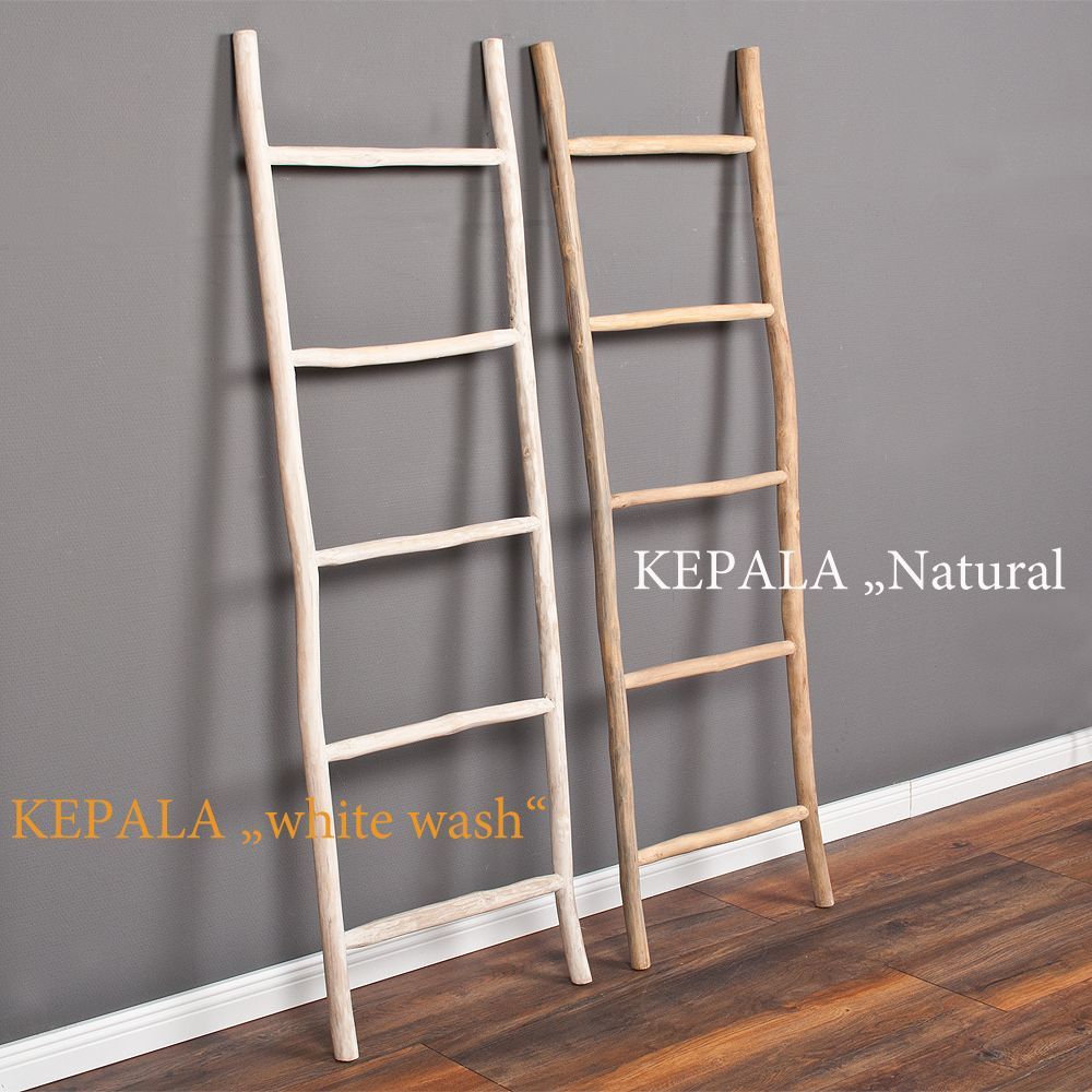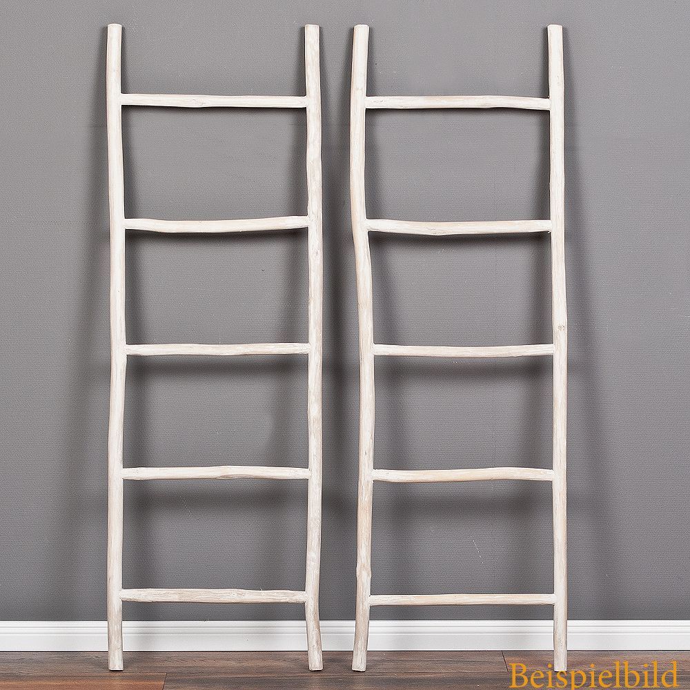 Teak Deko-Leiter KEPALA H150cm White-Wash Handtuchhalter Kleiderständer Leiter