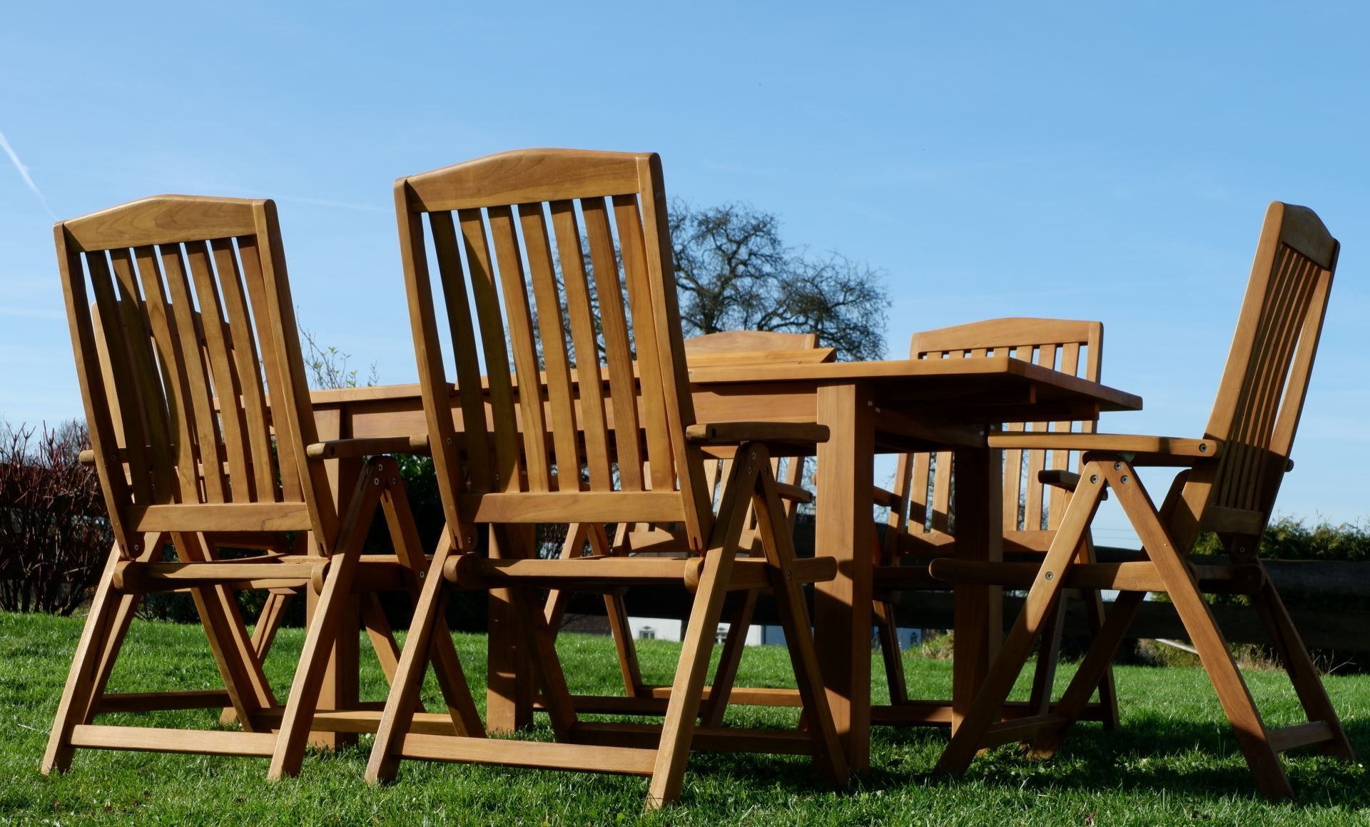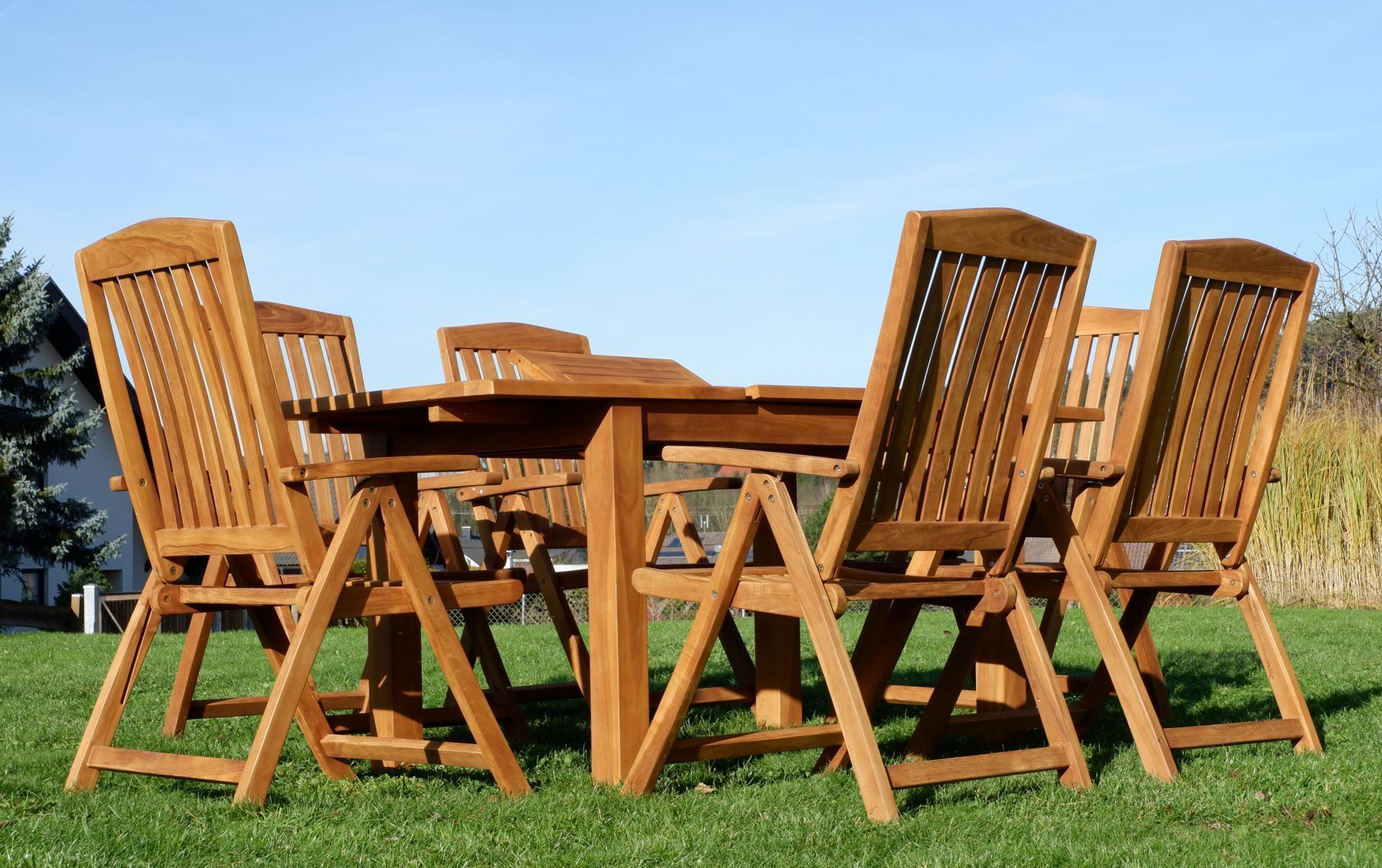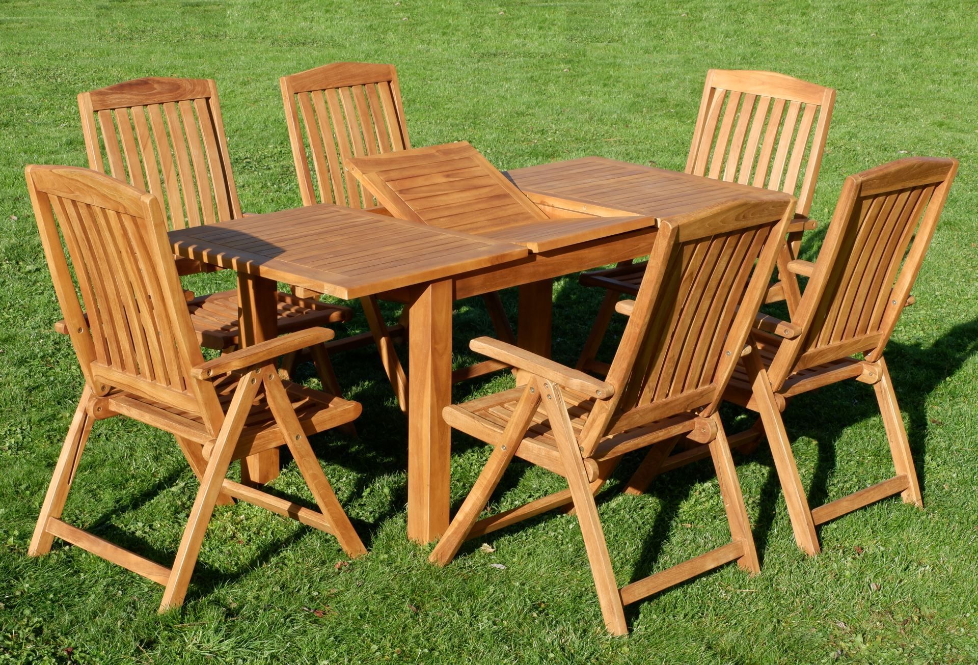 TEAK Gartenmöbel Set ausziehbarer Gartentisch 130-180 x 80 cm + 6 Hochlehner