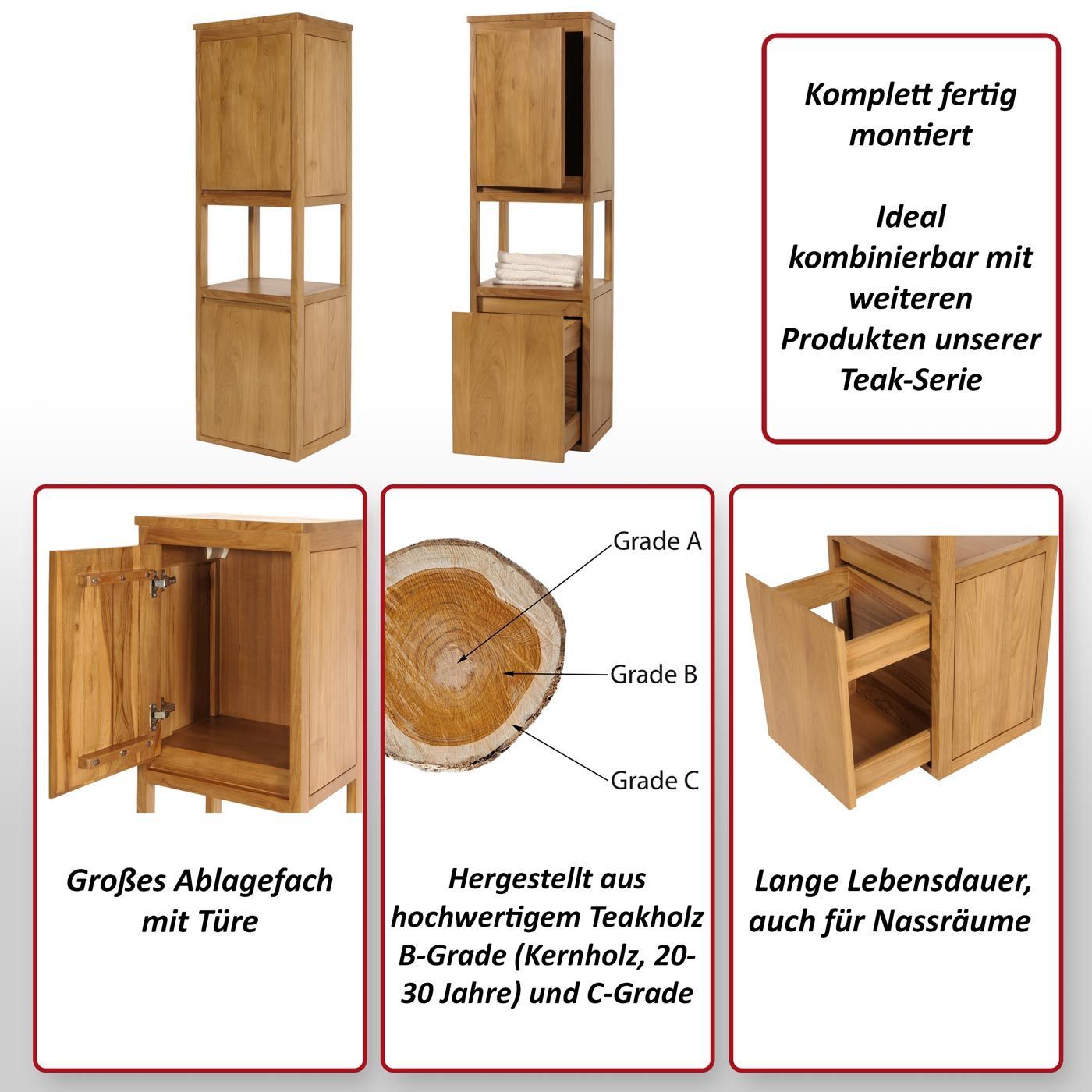 Mendler Teak-Hochschrank HWC-M71, Badschrank Badregal, hochwertiges B-Grade-Teak 141x41x36cm